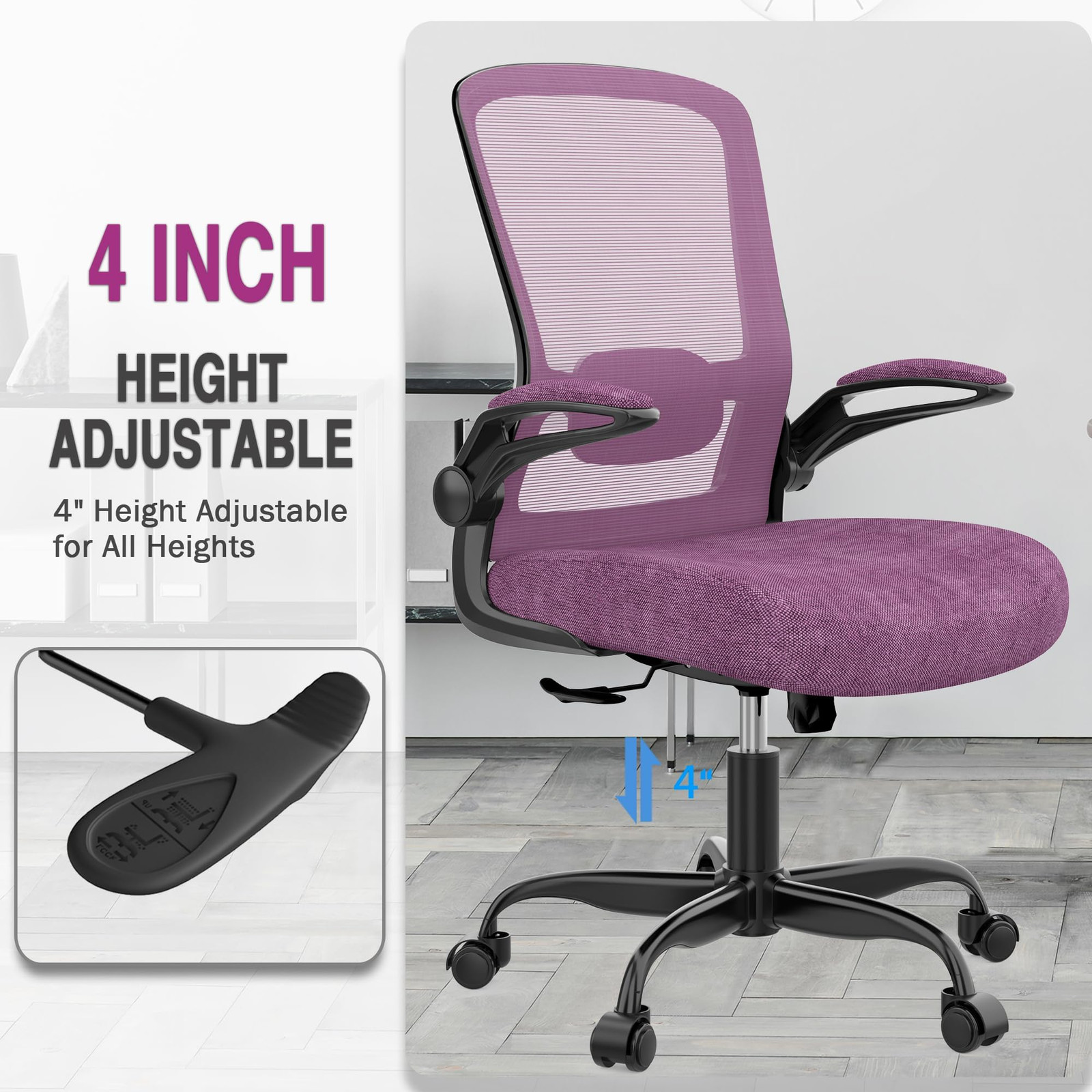 【ERGONOMIC DESIGN OFFICE CHAIR--Improve Your Posture】The design of the backrest fits the shape of the human spine, with the adjustable lumbar support, the office chair will give your back strong support. And the thick seat also can relieve the hip pressure to offer you comfort. Thick padded back & seat take this chair to the next level of comfort. Choose this office chair, choose comfort. 【ADJUSTABLE DESK CHAIR--More Comfort】This task chair has a 4 inch lifting range to meet the needs of people of different heights, it also has a reclining function of 90-135 °which allows you to relax yourselves after work. This mesh computer chair with flip-up armrest and seat height adjustable means you can find the perfect position to ensure you a pain-free day for long hour sitting. 【HIGH QUALITY MATERIAL--Work is Easier】Certified by BIFMA and SGS. Office Chairs have Soft High-density form Seat, which is covered with durable breathable mesh fabric and has good elasticity and difficult to deform to keep comfort for longer hours. Height-adjustable GAS LIFT CHROMED, Heavy-duty base and nylon smooth-rolling casters for great stability and mobility to help promote a comfortable seated position, keeping you comfy after long hours of game or work at home. 【SPACE SAVING】The simple style of the mesh office chair adapts ideally to any office furniture, especially in living rooms, bedroom, kitchen, study and office, and can be used in a variety of ways, you can flip the arms up and put it under the desk for saving space. 【WORRY FREE & Perfect Gift Idea】360 degree swivel, made of heavy-duty noiseless casters, its explosion-proof base plate with 5-star base increase safety and stability. Maximum capacity up to 300LB. We Guarantee our customers 100% satisfaction with our premium desk chair! If you’re not satisfied with this executive chair, just email us and get a solution WITH NO EXCUSE!