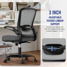 【SPACE SAVING】The simple style of the mesh chair adapts ideally to any office furniture, especially in living rooms, bedroom, kitchen, study and office, and can be used in a variety of ways, you can flip the arms up and put it under the desk for saving space 【HIGH QUALITY MATERIAL--Work is Easier】Certified by BIFMA and SGS; Office Chairs have Soft High-density form Seat, which is covered with durable breathable mesh fabric and has good elasticity and difficult to deform to keep comfort for longer hours; Height-adjustable GAS LIFT CHROMED, Heavy-duty base and nylon smooth-rolling casters for great stability and mobility to help promote a comfortable seated position, keeping you comfy after long hours of game or work at home 【ERGONOMIC DESIGN OFFICE CHAIR--Improve Your Posture】The design of the backrest fits the shape of the human spine, with the adjustable lumbar support, the office chair will give your back strong support; And the thick seat also can relieve the hip pressure to offer you comfort; Thick padded back & seat take this chair to the next level of comfort; Choose this office chair, choose comfort 【HIGH QUALITY MATERIAL--Work is Easier】Certified by BIFMA and SGS; Office Chairs have Soft High-density form Seat, which is covered with durable breathable mesh fabric and has good elasticity and difficult to deform to keep comfort for longer hours; Height-adjustable GAS LIFT CHROMED, Heavy-duty base and nylon smooth-rolling casters for great stability and mobility to help promote a comfortable seated position, keeping you comfy after long hours of game or work at home