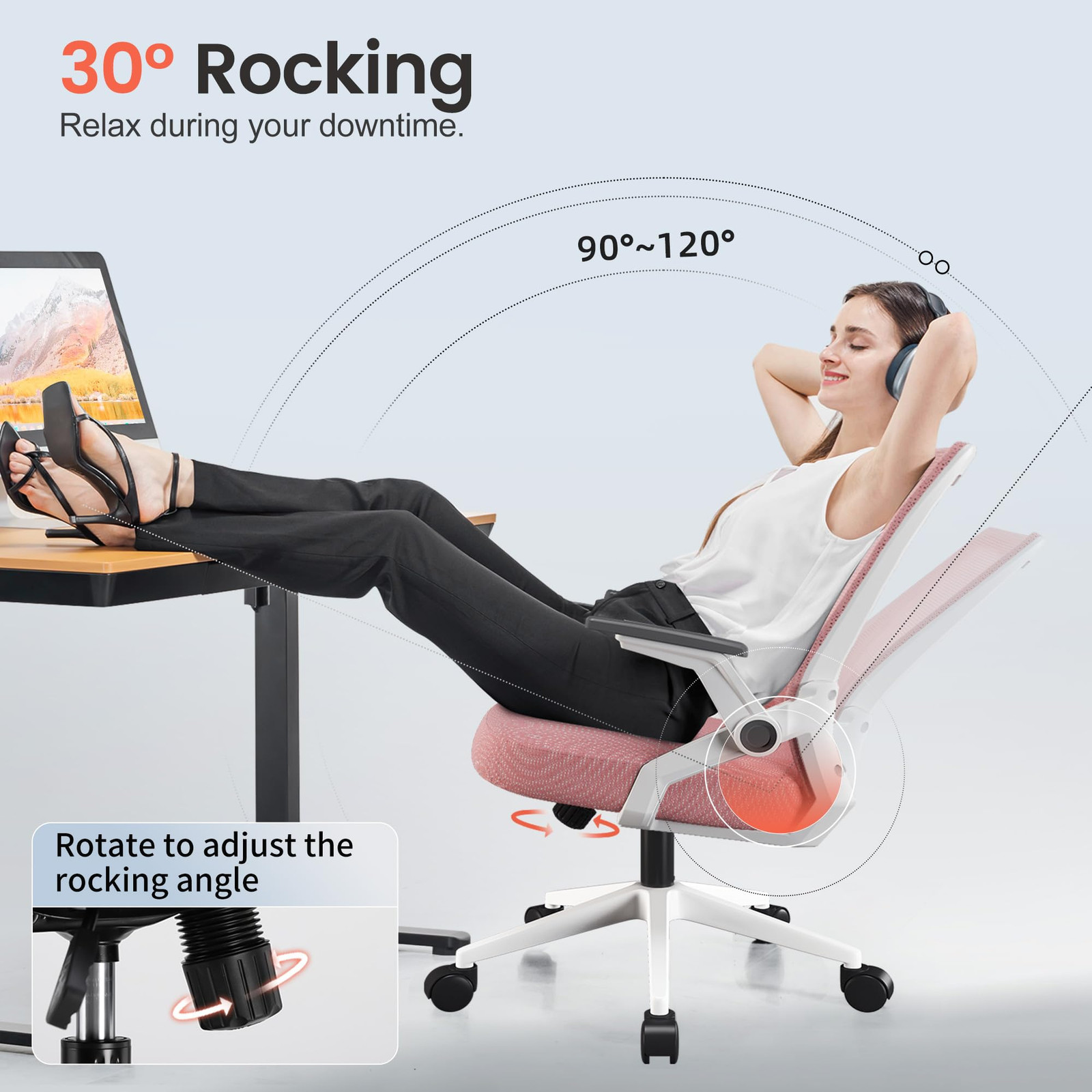 【Ergonomic Comfort】 This task chair features ergonomic design curves that better conform to your back. The adaptive support at the back of the chair provides ample lumbar support even when reclining. The breathable mesh back keeps you comfy, helping you avoid a sweaty back during long sitting hours. 【90° Flip-up Armrests】 Our office chair features 90° flip-up armrests. If you prefer an armless chair for guitar playing, you can easily flip up the armrests and sit as you like. Additionally, the foldable design allows you to stow the desk chair under the table, saving 1 ㎡ of home office space – perfect for small spaces. 【Multi-Adjustments】 Experience multi-adjustments with this computer chair! The gas lift has a 3.93" height adjustment, making this study chair suitable for both petite and medium-sized individuals. Unlock the tilt function and adjust the rocking function between 90° to 120° with the bottom knob. The 360° swivel seat allows you to enjoy personalized comfort. 【Certified Durability】 The SGS class-3 gas lift has undergone 100,000+ lift tests, ensuring long-term safety and smooth operation. The BIFMA tested sturdy metal base can withstand static pressure up to 1136KG. This desk chair is covered with anti-scratch mesh and filled with high-density foam, ensuring durability and resistance to deformation over prolonged use. 【Worry-free Purchase】 Illustrated assembly manual and all needed tools included in the package. Our office chair could be assembled by one single person within 30 minutes. We offer a 30-days replacement services and 1-years parts quality warranty as promise. 24/7 customer services team at your side.