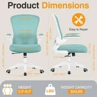 Experience unparalleled support with our ergonomic office chair, designed to provide comprehensive assistance for your back, hips, and arms. Tailored lumbar support ensures your comfort and well-being. Suitable for people of about 5'2" to 6'2". Easily adjust seat height, backrest, and flip-up arms to cater to diverse needs, offering comfortable support during extended periods of sitting. This office chair offers a spacious seating area, accommodating various body types. Overall dimensions (including arms): 25.7" W x 17.3" D x 46.9.3"-49.2" H, Seat dimensions: 21" W x 17.3" D x 18.5"-3" H. It can support up to 300 lbs. Its unique recline function allows you to tilt the backrest (90~110°) or sit upright freely, ensuring your comfort and relaxation. 【Ergonomic Support】: Enjoy enhanced comfort with Ergonomic Office Chair! Its lumbar support encourages proper posture, minimizing back strain during long work or gaming sessions. Stay productive and pain-free for hours! 【Adjustable Features】:This versatile Desk Chair easily adjusts to fit various desk heights and personal preferences. The flip-up arms provide added flexibility, allowing you to tuck the chair under your desk for convenient storage 【Breathable Mesh】: Mesh Chair features breathable mesh that promotes excellent airflow, ensuring you stay cool and comfortable during long hours of use. The office chair ensures you stay refreshed all day 【Smooth Mobility】: The 360-degree swivel functionality enhances mobility, making it easy to reach all areas of your workspace. Smooth-rolling wheels ensure effortless movement on various floor types. Max capacity: 300 lbs 【5-year Support】: Assembly is simple with our clear instructions and videos. Enjoy a 5-year free customer support and responsive support for any questions. We’re committed to ensuring a better experience for you!