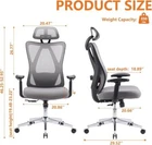 Return Policy Fast Delivery Trusted seller Ergonomic Office Desk Chair, High Back Comfy Swivel Home Computer Gaming Mesh Chairs with Wheels, Adjustable Lumbar Support, Headrest, Liftable 2D Arms,135° Tilt, Dark Grey Product Description 【Adjustable Headrest & Lumbar Support】The headrest of this ergonomic home office chair is adjustable in height and 45° angle to meet the needs of work and relaxation. The soft lumbar support can be adjusted up and down, front and back freely to fit the lumbar area more closely and relieve the fatigue of sitting for a long time. 【Ergonomic Design】The office desk chair with an S-shaped ergonomic high back to accommodate the natural curvature of the spine, providing maximum support for your lumbar and shoulders. The mesh backrest is highly breathable and can be tilted 90°-135° for all-day sitting and relaxation. 【Comfortable Thick Cushion】The padded cushion of this computer desk chair is made of high-density shaping foam. The thickened design reduces pressure on the hips and tailbone. Cushion size: 20.86"×20.66".Designed to meet the needs of big and tall people. Liftable 2D armrests provide comfortable support for hands. 【Multifunction Mechanism】The height of this comfy swivel chair is easily adjustable from 19.48"-23.22".A large 5-star-shaped base enhances stability, load capacity of 350 lbs. Smooth multi-directional wheels are made of PU material with no resistance and no noise, allowing you to easily move on tiles, hardwood floors, and carpets without causing damage to them. 【Wide Application】This ergonomic gaming chair is perfect for the office, bedroom, study, living room, or game room. Perfect gift for husband, wife, son, friend, family. It's also the choice for Christmas, Father's Day, and Mother's Day. 【Easy Installation】The mesh office chairs come with all hardware and necessary tools, we also provide instructions and videos to help you easily finish the installation in 10-15 minutes. Shipping Returns Payment Shipping Shipping is FREE to all addresses other than APO/PO boxes in the lower 48 states. All our stock ships from US-based warehouses. Shipped via USPS or UPS (depending on location and package weight) Unless stated otherwise, all orders will ship within 24-72 hours of your payment being processed. Check our feedback to see the great reviews of FAST shipping we offer. Returns Seller does not accept returns Payment We currently accept payment via eBay managed payments only. Once payment is cleared, we will dispatch your shipment within 1-3 business days. Please refer to the "Shipping" tab for more information regarding shipping speed to your destination.