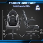 Specifications Place of Origin China Main Color Black+ Gray Main Material PU Dangerous Goods #dangerFlag# Dimensions & Weights Assembled Length (in.) 25.00 Assembled Width (in.) 27.00 Assembled Height (in.) 45.00 Weight (lbs) 30.00 Product Features ERGONOMIC GAMING CHAIR - The back of our computer chair is designed to better fit the S-shaped curve of your back, and the upgraded padded, wide back provides flexibility and comfort. The padded armrests feel soft but supportive, providing extra support for your hands, elbows and arms.The armrests can be flipped up 90°, and when the armrests are flipped up and locked in an upright position, it is easy to push the desk chair under the table, helping you save the space. COMFORTABLE SEAT CUSHION - The seat cushion of this gaming chair features a cutout design that fits better and helps you maintain a good sitting position. And the wider seat is filled with high resilience foam to ensure long-term use without deformation. You will feel the ultimate comfort in this PU leather office chair. ROCKING MODE - Pull out the lever and you will be able to tilt the backrest of this computer chair. You can rock back and forth on this chair to relax your legs during long hours of sitting. The height of our gaming chair seat is adjustable to accommodate different people. STURDY AND HIGH QUALITY - The back and seat of this PU leather office chair are wrapped in high quality bonded leather that is not only skin friendly, but also easy to clean. The sturdy base keeps the entire gaming chair stable and can support up to 275 lbs. Nylon casters allow for smooth movement on a variety of surfaces without noise or scratches. Description