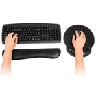 【Fatigue-free Typing Design】This keyboard wrist rest and wrist rest pad set is contoured ergonomically to keep the wrist well supported for higher while working and gaming for long periods of time. Perfect wrist & hand fatigue reliever for workers, gamers, writers, editors who are engaged at long typing work. 【Lightweight & Soft & Sturdy】Soft PU leather and interior spongy memory foam elastic materialto the pads,supply Lightweight, Comfortable, Sturdy and Ergonomic touch, slow bounces back and not easy to out of shape and Ideal for Longer Hours of Use,prevent your wrist from injury. 【Anti-slip Rubber Base】The backside of this wrist support kit is thickened with textured rubber material, which provides heavy grip preventing sliding or unwanted movement for Keyboard and pads when typing. Double Sticking and Press handing for edge to supply flat and smooth edge and will not roll up nor split open. 【Standard Size】The keyboard wrist support (44x8.5x2.5 cm/17.3*3.3*0.98 in) and the pad with wrist rest (27x24.5x2.5 cm/ 10.63*9.65*0.98 in) fits most computers or notebooks or , improve hand and wrist posture, avoid joint and wrist problems and release your elbows and shoulder for long hours of use on the computer. 【Perfect Gift】Fit for office workers, gamers, designers, students, and others who work on laptops or computers for extended periods of time.a great product use at office, family, school,etc. If there's an issue(man-made damage not included) of the item you received, please feel free to us firstly by , we will help you out promptly and positively.