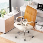 Specifications: Color:White/Pink/White and Brown Product Dimensions :23.62''L x 19.7''W x 39.39''-43.3''H Back Style: Solid Back Special Feature: Upholstered Leather,Adjustable Lumbar,Adjustable Height,Ergonomic,Armrest About this chair: I ndulge in ultimate comfort:Sink into the sumptuous,sofa-like embrace of our premium computer desk chai,crafted with exquisite luxury leather and resilient high-density foam.More than just durable and low-maintenance,its vibrant hues breathe life and chic sophistication into your space, transforming it into a personal oasis. Ergonomic bliss:Experience unparalleled relaxation with our adjustable PU leather office chair, featuring flexible height settings and a tilt function ranging from 90 to 120 degrees.Designed with ergonomic curves,this desk chair ensures optimal support during extended work hours,wrapping you in comfort.The sturdy silver base,equipped with smooth-rolling casters,adapts seamlessly to various surfaces,enhancing your mobility in the office. Timeless elegance meets versatility:Our executive office chair marries mid-century modern style with classic PU leather and a robust silver metal frame,creating a piece that is both durable and visually striking.Whether placed in the office or the bedroom,it complements different interior decors effortlessly,adding a touch of timeless sophistication to your space. Effortless assembly and unwavering support: With its quick assembly design,you can effortlessly set up your ergonomic computer chair in just 10 to 20 minutes,in the event of any issues,our dedicated customer service team stands ready to provide prompt and efficient support,ensuring your satisfaction every step of the way. A promise of quality and strength:Our aesthetic reclining swivel chair has undergone rigorous safety and durability testing,boasting a remarkable weight capacity of 300 pounds,this testament to superior craftsmanship and design quality underscores our commitment to delivering a chair that stands the test of time,blending beauty with resilience. Package Inlcudes: 1 x A brand new office chair 1 x A clear instruction