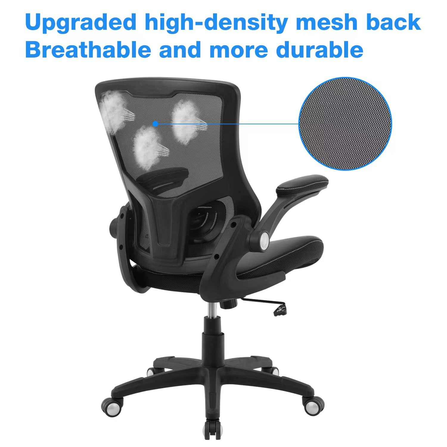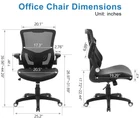 【Super Comfortable Office Chair】The 3.5" thickened sponge seat cushion is quite soft and highly resilient, making it suitable for sedentary lifestyle. The cushion surface of PU leather is more skin-friendly and easy to clean. Breathable mesh backrest can effectively prevent sweat and keep your back cool 【Ergonomic Design】The S-shaped curve of the chair fits the spine of the human waist and back well, improving the sitting posture and protecting the health of the spine. Its wider seat provides a larger load-bearing area and relieves pressure on your buttocks 【Adjustable Custom Comfort】Equipped with a lumbar support that can be adjusted up and down, adding support can help you focus on your work. Adjustable seat height meets the needs of various heights. Seat height range (cushion to floor) is 17.72''-22.44''. The tilt rocking function allows you to switch between work and rest at will (Please loosen the tension knob first) 【Sturdy and Space-saving】This chair passed SGS certification and BIFMA test, maximum capacity is up to 300 lbs. The 3-stage cylinder ensures the safety and stability of the chair. With 90°flip-up armrests, you can easily push the chair under the table to save more space. Quiet casters and 360°swivel help move smoothly in the office, study or conference room 【Easy to Assemble】All the parts, screws and wrench needed to install the chair are in the box. Following the detailed installation manual, you can install the chair in about 15-20 minutes. Installation video can also help you with installation 【Satisfactory Service】If there are any problems such as missing parts, product damage, or other unsatisfactory issues, please reach us in time. We will reply you within 24 hours and actively solve them. Thank you for choosing office chair. We will be responsible for your choice