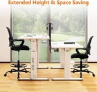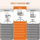 From the brand Sweetcrispy is a trendy and contemporary office furniture supplier. We are dedicated to designing office chairs that align with the principles of ergonomics. We strive to create a beautiful ambiance in the workplace by incorporating unique craftsmanship, design philosophy, and aesthetic elements into each piece of furniture. Let's work together to transform your workspace into a picturesque scene that complements your lifestyle. Black Drafting Chair Grey Drafting Chair Tall Chair with Flip-up Arms Tall Chair with Flip-up Arms Black Office Chair Grey Office Chair Pink Office Chair Office Chair with Flip-up Arms Office Chair with Flip-up Arms Ergonomic Tall Office Chair Ergonomic Office Chair Product Description The tall office chair has an adjustable seat height range from 23.43" to 29.33", making it perfect for regular, standing and high desks. The standing desk chair also features a footrest with an 8" adjustment range, allowing you to find a comfortable position for your legs and prevent fatigue from prolonged sitting. The backrest of this high office chair perfectly conforms to your spine's natural curve, and the lumbar support gives excellent back support, alleviating back pressure and promoting healthy posture. The lumbar support can double as a convenient storage basket, allowing you to store files and other items within easy reach. The larger and thicker seat cushion of this tall desk chair is made from upgraded foam with higher density, which is resilient and deformation-resistant. The cushion's edge is curved like a waterfall to minimize pressure on your thighs, ensuring maximum comfort during extended periods of sitting. The drafting chair is crafted from high-quality materials for durability and comfort. Its breathable elastic mesh fabric provides excellent ventilation while the sturdy metal base frame ensures stability. It utilizes a class 3 gas cylinder, tested by SGS to support up to 250 pounds. This chair features swivel wheels and a 360° rotating seat, allowing you to quickly adjust your position for more convenient work or leisure. The wheels are also very smooth and durable, making for quiet and easy movement, and are suitable for various types of flooring. Color Black Product Dimensions 18.5"D x 20.08"W x 48.82"H Size 28.4"D x 28.4"W x 48.8"H Back Style Solid Back Special Feature Adjustable Height Unit Count 1.0 Count Recommended Uses For Product Office, Relaxing, Reading Maximum Weight Recommendation 250 Pounds Pattern Solid Room Type Office, Bedroom, Classroom, Library, Study Room Included Components User Manual, Assembly Tool, A Drafting Chair Shape Rectangular Model Name Drafting Chair Surface Recommendation Hard Floor Form Factor Upholstered Here are More Ergonomic Office chairs from Sweetcrispy Overall Dimension 28.35 x 28.35 x 42.91-48.82 in 28.35 x 28.35 x 42.91-48.82 in 28.35 x 28.35 x 42.91-48.82 in 28.35 x 28.35 x 42.91-48.82 in 26.38 x 26.38 x 37.8-41.5 in 26.38 x 26.38 x 37.8-41.5 in 26.38 x 26.38 x 37.8-41.5 in Seat Depth 17.5 in 17.5 in 17.5 in 17.5 in 17.5 in 17.5 in 17.5 in Seat Height 23.43-29.33 in 23.43-29.33 in 23.43-29.33 in 23.43-29.33 in 18.5-22.2 in 18.5-22.2 in 18.5-22.2 in Upgraded Thickened Cushion Backrest with Storage Basket Armrest Fixed Armrests Fixed Armrests Flip up Armrests Flip up Armrests Fixed Armrests Fixed Armrests Flip up Armrests 360° Swivel Adjustable Footrest Weight Capacity 250 lbs 250 lbs 250 lbs 250 lbs 250 lbs 250 lbs 250 lbs
