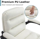 Specifications: Color: White, Gray Material: PU Leather+ Metal Frame Overall Dimension: 18.11"D x 17.71"W x 33.07"-36.22”HPackage Size: 18.7"D x 11.41"W x 23.22"H Item Weight: 29.76 lbs Max. Weight Capacity: 400 LB What You Will Get 1 x Swivel Rolling Chair 1 x Accessory Kit 1 x Instruction Notes: 1. Avoid sharp knife contact the surface to prevent scratches. 2. Avoid letting children climb on the bar stools unsupervised. 3. Ensure the chair are placed on even surfaces and regularly check for loose screws. 4. Clean with a soft, damp cloth, and avoid corrosive chemical liquids and inferior chemical cleaners contact the surface, causing surface fading, aging, cracking, etc. Ergonomic Office Chair: The backrest design conforms to the shape of the human spine, providing strong lumbar support for your back. The thick seat cushion helps relieve hip pressure, enhancing your comfort. The thickly padded back and seat elevate this chair to the next level of comfort. Ideal for home offices, workstations, or conference rooms. Space-Saving Design: This office chair is designed with space-saving features in mind. The height-adjustable dimensions (18.11" L x 17.71" W x 36.22" H) ensure it fits perfectly into any office or workspace. Additionally, the flip-up armrests allow for easy storage under your desk when not in use, maximizing the available space in your office area. Unmatched Safety & Stability: Built to excel, our chair's gas lift height adjustment mechanism is SGS-certified, ensuring unwavering stability and enhanced safety. With a robust base and smooth-rolling casters, it guarantees effortless mobility without compromising strength. Maximum weight recommendation: 300 pounds. Premium Materials: This office chair with armrests is constructed using top-notch materials to guarantee maximum comfort and longevity. It features a high-density, thickened sponge cushion (4.72 inches) that provides exceptional comfort and resilience. The chair is upholstered with high-quality PU leather, ensuring waterproof protection and breathability. Customizable Comfort: Our desk chairs come with a rocking lock and resistance knob, offering flexible height and tilt adjustments. You can effortlessly modify the seat height to suit your preference, while the tilt feature enables a gentle rocking motion in both forward and backward directions. The thoughtful design of this robust home office chair ensures you can fully indulge in the encompassing comfort it offers.
