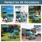 Folding Chaise Zero Gravity Chair Patio Lounge Chair W/Cup Holder & Headrest+Mat Zero Gravity Chair Gray Pad Zero Gravit y Chair With Blue Pad Zero Gravity Chair With Remova ble Soft Pad Co lor Blue Gray Green Dimensions ( Setu p ) 45“ X 28" X 26" 45“ X 28" X 26" 45“ X 28" X 26" Pack We ight 18.7 lbs 18.7 lbs 18.7 lbs Adj ustable Angel 90-170 degrees 90-170 degrees 90-170 degrees Fram e Steel Steel Steel Pad M aterial Pearl Cotton Pearl Cotton Pearl Cotton Side Table ✓ ✓ ✓ Adjusta ble Headrest ✓ ✓ ✓ Fol ding ✓ ✓ ✓ A ll-Weather Resis tant ✓ ✓ ✓ Why Choose Our Chair? By reclining to a nearly flat position, your blood circulation is improved by shifting the weight to the whole chair.This zero gravity position is known to reduce back pain and discomfort due to the long duration of sitting down. It would be a perfect gift choice to friends or the elders About the Item Zero Gravity Chair is meant to simulate Zero Gravity when reclined.Whilst reclined, your legs are elevated to reduce back pressure, and the headrest is adjustable to provide maximum comfort.; The locking mechanism allows you to lock this chair in the most desirable position, and the elastic cord support system keeps you elevated while adjusting to your body size. It provides 90-170°degree to adjust,which gives you a perfect angle to rest. For easy stacking and storage, this gravity chair can be folded into one-third. And it is lightweight, which can be easily moved from room to room.A cup holder tray to place beverage, magazine, phone or other small items for convenient accessibility. padded headrest and gently contoured armrests for a better relaxing experience.Weight Capacity: 440 lbs. Item Size: 35.5''- 65''(L)× 26''(W) ×45''(H). Folding Size: 37.4''(L)× 26''(W) . Key Features: 【 ZERO GRAVITY 】 The zero gravity chair is designed to satisfy your ultimate comfort. The armrest of outdoor padded lounge chair is thick and contoured. It will serve you whether sitting or lying, outdoor and indoor. Our folding lounge chair comes with a thick and soft pad, and the ergonomic design of this outdoor recliner chair can relieve pressure on your spine, improve circulation, and reduce muscle tension. Whilst reclined, your legs are elevated to reduce back pressure, and the headrest is adjustable to provide maximum comfort.; The locking mechanism allows you to lock this chair in the most desirable position, and the elastic cord support system keeps you elevated while adjusting to your body size. It provides 90-170°degree to adjust,which gives you a perfect angle to rest.Simply push the clip to unlock the position, and pull the clip back to secure it at your desired position. 【 FOLDING DESIGN 】 This folding lawn chair can be folded and unfolded in seconds. The camping lounge chairs are easy to transport and store, and you can easily carry them by car. Suitable for terraces, lawns, gardens, yards, balconies, poolsides and beaches.Item Size: 35.5''- 65''(L)× 26''(W) ×45''(H). Folding Size: 37.4''(L)× 26''(W). 【 CUP HOLDER TRAY AND HEADREST 】 A cup holder tray to place beverage, magazine, phone or other small items for convenient accessibility. Padded headrest and gently contoured armrests for a better relaxing experience. 【 REMOVABLE SOFT CUSHION 】 Intuitive design features that this outdoor recliner chair can be used by anybody. You can remove the soft cushion from outdoor patio reclining chair to promote better airflow during hot summer days. Plus, the zero gravity chair is very easy to install and can be easily folded, for easier storage and handling. 【 STURDY & DURABLE 】The Zero Gravity Chair is built with premium quality materials to enhance the load-bearing capacity of the chair, which provide increased durability and resistance. The Reclining Patio Chairs can take over 440 pounds of weight and it is extra durable and will last you a lifetime, good support ability. 【 NO ASSEMBLY 】 The zero gravity lounge chair features a folding design and compact structure for easy transport and storage; perfect for the poolside, yard, beach or balcony. 【 MULTI PURPOSES 】Whether you want to relax by reading a book or take a quick break, this comfortable chair is the ideal solution. It can be used for indoor and outdoor activities, such as family gatherings, barbecues or beach days, or in the office. Specifications: Item Size: 35.5''- 65''(L)× 26''(W) ×45''(H). Folding Size: 37.4''(L)× 26''(W) Product weight: 18.7lbs Weight capacity:440lbs Material:Made with high quality textilene fabric Includes: 1*Zero Gravity Chair ,1*4D Pillow ,1*Cup Holder ,1*Detachable Soft Cushion Shipping Warranty and Guarantee Feedback About Us Manufacture’s Information Shipping All the items will be shipped from California, United States within 48 business hours upon receipt of your payment.We DO NOT ship to APO/FPO addresses, Puerto Rico, Hawaii, Virgin Islands, etc ( FedEx Services) are offered and shipping time is Estimated in 1-5 Days depending on the destination. Please feel free to contact us if you don't receive your package within 14 business days.We only send item to your Verified address and please make sure it is correct.