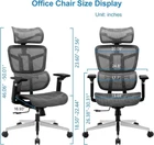 About this item 【Adjustable Lumbar Support & Backrest】The lumbar support could be adjusted back and front 2in, and the backrest is adjustable up and down 5 levels, which makes the home office chair your best choice to protect your spine from the pain and fatigue of sitting for a long time. 【Ergonomic Design Comfortable Chair】office desk chair adopts the most suitable ergonomic design according to the human body structure, adjustable headrest, and lumbar support which creates total spinal support, and arched seat cushion design reduces the pressure on the legs, the office chair adjusts with postures to hold spine perfectly and ease pressure & pain on back and legs for everyday use. 【Adjustable Office Chair】 office chair has a recline function, makes you tilt the backrest back (90~135°) with the tilt lock or sit straight freely, adjustable seat height, and the headrest 45° rotation adjustment, suitable for people of different heights, not only for tall people(Applicable Height: 140-190CM), seat height adjust 18.7"-22.24". Backrest with headrest height adjusts 26.58"-31.98". 5D armrests (forwards and back, up and down, left and right rotation) 【Upgraded Luxurious Configuration】This office chair is upgraded with a luxurious configuration to bring you the most comfortable experience, an upgraded version luxury casters which has greater stability, strength, smoothness, and no harm on the wooden floor, SGS-certificated gas lift cylinder, with a loading capacity of 300 lbs. 【 Breathable Mesh】 mesh breathable back and seat is made of highly resilient mesh material making it sit for a long time without deformation and mesh back and mesh seat allow for better airflow compared to cushioned chairs, which can trap heat and moisture, providing you with a comfortable sitting experience all day long