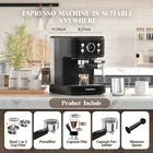 20 Bar High Pressure Espresso Machine : Experience coffee perfection with our 20-bar espresso maker, featuring an 1100W heating system for rich, aromatic brews. The built-in thermometer allows precise temperature adjustment. The machine offers two modes for using coffee capsules and grounds, though some capsules may not be compatible (capsules not included). The stable steam system includes a 360ยฐ rotatable steam wand, perfect for crafting lattes and cappuccinos, complemented by a detachable foam nozzle for easy cleaning. Safety is ensured with an auto shut-off feature after 25 minutes of inactivity. The user-friendly four-button interface and ergonomic steam wand with a clip make operation and cleaning simple. Choose between single or double espresso shots with the press of a button. Its compact design fits any countertop, making it ideal for home or RV use and a perfect gift for any occasion. โก๏ธ๐๐ ๐๐๐ซ ๐๐ข๐ ๐ก ๐๐ฎ๐๐ฅ๐ข๐ญ๐ฒ ๐๐ฌ๐ฉ๐ซ๐๐ฌ๐ฌ๐จ๏ผThis coffee espresso machine features a 20-bar high-pressure pump paired with an 1100W robust heating system, designed to craft a thick, aromatic coffee. By observing the built-in thermometer, the barista can adjust the temperature of the coffee machine as needed to achieve the ideal coffee brewing effect โ๐ ๐๐ฉ๐๐ซ๐๐ญ๐ข๐จ๐ง ๐๐จ๐๐๐ฌ ๏ผThe express coffee machine offers three operation modes, accommodating, capsules, and coffee powder, to suit various coffee brewing preferences. However, it's important to note that certain capsules may not be compatible with this machine. Please be aware that the machine does not come with ESE PODs or capsules included ๐ฑ๐๐ญ๐๐๐ฅ๐ ๐๐ญ๐๐๐ฆ ๐๐ฒ๐ฌ๐ญ๐๐ฆ ๏ผEquipped with a stable steam system, this espresso coffee maker features a 360ยฐ rotatable steam wand that simplifies the process of crafting lattes, cappuccinos, and other espresso-based drinks, whether at home or in the office. The convenience is further enhanced by a detachable foam nozzle, streamlining the cleaning process ๐ก๏ธ๐๐๐๐๐ญ๐ฒ & ๐๐๐ญ๐๐ซ-๐๐๐ฅ๐๐ฌ๏ผ Safety & After-Sales: Our expressions machine comes with an auto shut-off feature for enhanced safety. It powers down automatically after 25 minutes of inactivity following the brewing cycle, mitigating the risk of damage due to inadvertently leaving the machine on. Your satisfaction is our priority. Should you have any inquiries, please do not hesitate to reach out to us โ๏ธ๐๐๐ฌ๐ฒ ๐ญ๐จ ๐๐ฅ๐๐๐ง & ๐๐ฉ๐๐ซ๐๐ญ๐ ๏ผThis coffee espresso machine boasts a user-friendly four-button interface to cater to a variety of preferences. Featuring an ergonomically angled steam wand with a convenient clip, it allows you to froth milk without direct contact with the hot surface, making the process safer and more comfortable. The addition of a detachable transparent water tank and an easily removable drip tray significantly simplifies the cleaning routine ๐ Key Selling Point: XL Tank + Ultra-Lightweight for Dorms & Tiny Spaces Perfect for Dorm Life: Weighing only 8.38 lbs (3.8 kg) with a compact footprint (15.6โD ร 8.3โW ร 11.4โH), this coffee machine slides effortlessly onto cramped dorm desks, shared countertops, or mini-fridge topsโno space wasted! The extra-large 1.5L tank brews 10+ cups per fill, ideal for group study sessions or roommate sharing, while low-wattage operation ensures safe use in power-restricted dorms ๐ง๐ & ๐ ๐๐ฎ๐ฉ ๐ ๐ฎ๐ง๐๐ญ๐ข๐จ๐ง ๏ผThe barista coffee machine is designed with versatility in mind, featuring two distinct filters tailored for single or double espresso shots. Depending on your preference, simply select the corresponding button for a one or two-cup serving on the control panel, and the machine will automatically brew the perfect espresso ๐ ๐๐ฉ๐๐๐ ๐๐๐ฏ๐ข๐ง๐ & ๐๐จ๐ฆ๐ฉ๐๐๐ญ ๐๐๐ฌ๐ข๐ ๐ง ๏ผOur espresso machine with milk frother for home boasts a sleek, compact build, perfect for fitting onto any countertop. Its space-efficient design even makes it an ideal companion for your RV travels, ensuring that you can savor delicious coffee wherever you go. Ideal for wedding gift, birthday gift, Christmas gift, friend gift, parent gift ๐Dual-Voltage Ready: Seamlessly switch between 120V/60Hz (US standard) UL-Certified Reliability: Equipped with CM4637A polarized plug and 16AWG SPT-2 power cord (1.31mmยฒ core, 25A load capacity), ensuring fire-resistant safety and durability for high-power brewing.Stable Power Delivery: Robust wiring prevents overheating during extended use, guaranteeing consistent performance for espresso extraction and steam functions ๐งช ๐๐ซ๐จ๐๐ซ๐๐๐ ๐๐ฎ๐ซ๐๐๐ข๐ฅ๐ข๐ญ๐ฒ & ๐๐จ๐ง๐ ๐๐ฏ๐ข๐ญ๐ฒ๏ผEngineered with commercial-grade stainless steel internals and 200,000+ pressure cycle testing (exceeding DIN standards), our espresso machine withstands daily high-intensity use (100+ cups simulated)