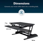 Spacious and Adjustable Design: The computer standing desk converter offers a 36” wide work area with two tiers. The lower tier is dedicated to accommodating your keyboard and mouse, while the upper tier provides space for your computer or laptop, along with other work or gaming accessories. Dual-Handle Lift: Engineered for your safety and ease, the dual-handle spring-assisted lift allows for quick and easy height adjustment. Effortlessly raise or lower your ergonomic desk riser to one of the 11 height settings, raising up to 17.5" off your wide desk lift. Fully Assembled: The "Essential 36" dual monitor desk riser comes fully assembled, eliminating the need for complicated setup. Simply place it on your existing table or desk, and you're ready to work more productively. Space-Saving Design: The standing desk converter with keyboard tray is designed to maximize space efficiency, making it suitable for home offices with limited square footage. Its vertical, straight-up-and-down lift direction helps save space, making it ideal for small spaces and narrow home office desks. Trusted Brand: Every time you buy a Vari product, you get quality, convenience, and a risk-free purchase you can feel good about. Product Description The VariDesk Essential 36 is an affordable standing desk, perfect for anyone who wants to bring more movement to their home workspace. This sit-to-stand desk converter has a simple, 2-tiered design with a lower mouse and keyboard tray on the bottom and an upper deck that can accommodate single-monitor setups. Product Features 11 Adjustable Height Settings Spring-Assisted Rowing Lift Adjusts Easily Between 5" and 17 ¾." Compatible with Computer Monitor Arms Weighted Base for Stability Ships Fully Assembled Supports up to 25 lb (11.3 kg) Product Specifications 5-17.75" (H) x 36" (W) x 27" (D) 11 Adjustable Height Settings This standing desk converter allows you to easily transition from standing to sitting at your workspace. Adjust to your perfect height within seconds with 11 height settings. Spring-Assisted Rowing Lift The ergonomic rowing and spring-assisted lift make it easy to adjust your desktop to heights between 5 and 17 ¾ inches. Dual-Handle Design This desk riser is built with convenient handles on both sides so you can lift or lower the adjustable standing desk with ease. Add to Cart Add to Cart Add to Cart Add to Cart Customer Reviews 4.7 out of 5 stars 365 4.7 out of 5 stars 785 4.7 out of 5 stars 797 4.7 out of 5 stars 3,109 Price $239.99 $ 239 . 99 $229.99 $ 229 . 99 $300.00 $ 300 . 00 $340.00 $ 340 . 00 Monitor Capacity 1 1 1 2 Posture Curve ✓ ✓ Dimensions 4.5” (H) x 36” (W) x 24” (D) 5" (H) x 30" (W) x 27" (D) 4.5"(H) x 30"(W) x 29.75"(D) 4.5"(H) x 36"(W) x 29.75"(D) Product Weight 53.32lb 42.56lb 46.39lb 52.15lb Weight Capacity 25lb 25lb 35lb 35lb Converter Width 36" 30" 30" 36" Necessary Desk Depth 25.75" 25.75" 25.75" 25.75" Desk Max Height 17.5" 17.75" 17.5" 17.5" Certifications GreenGuard,GreenGuard Gold GreenGuard,GreenGuard Gold GreenGuard,GreenGuard Gold,ANSI/BIFMA GreenGuard,GreenGuard Gold,ANSI/BIFMA Product Coverage 3 Year 3 Year 5 year 5 year