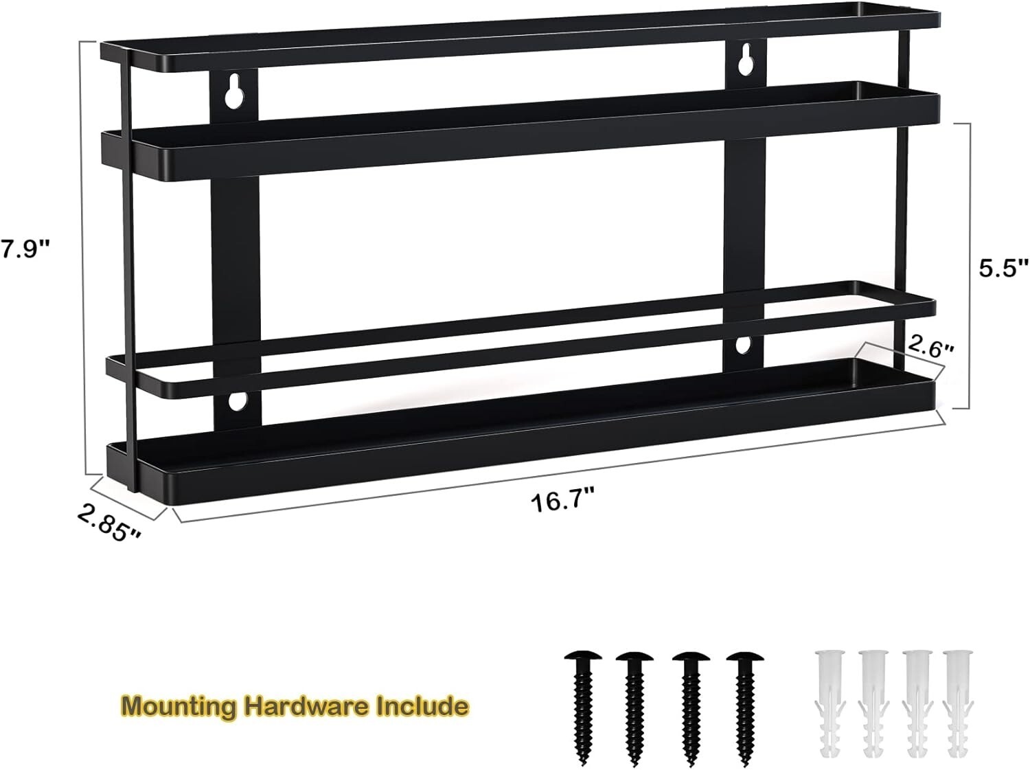 Estante Para Especias De 4Niveles, Estantes De Almacenamiento Para El Hogar Y l Organizador de especias de 2 niveles: Su diseño de 2 niveles ofrece amplio espacio para botellas de diferentes tamaños. Ideal para organizar frascos de especias, mermeladas, artículos de tocador o esmaltes de uñas. Crea espacio de almacenamiento perfecto en tu cocina y baño. Multifunción: Paquete de 2 unidades, económico. Ahorra espacio en tus armarios y facilita la búsqueda de especias y extractos. Es un excelente soporte para especias, pimienta, sal, azúcar, aceites de cocina, pimienta u otros artículos pequeños. Dos maneras de usar: La base de este estante es plana y se puede usar directamente sobre la encimera o en la pared. Fácil de montar en la pared o en la puerta del armario. Incluye tornillos. Material metálico resistente: Hecho de metal grueso de alta calidad, resistente y estable. La superficie está tratada con un recubrimiento especial para prevenir la oxidación, lo que aumenta la durabilidad del estante. Dimensiones: 42 cm de largo x 7,2 cm de ancho x 20 cm de alto (altura entre capas: 14 cm de alto).