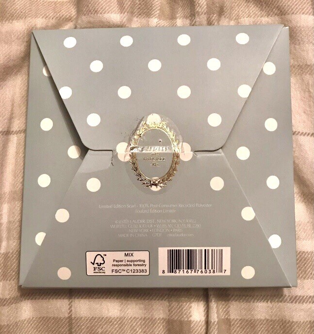 LIMITED EDITION Estée Lauder x Ladurée Paris Baby Blue & White Polka Dot Scarf. Makes for a perfect headscarf! It comes inside this cute little matching polka dot box.
