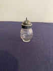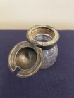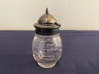 This etched glass lidded jar could be used for many things, either jam or jelly, mustard, possibly even salt or sugar. The lid has an open slot for a spoon. Beautiful etched glass design. I'm not positive on the age of this piece but knows its definitely vintage and could possibly be antique. The lid appears to be silver plated. The tarnish for sure makes it appear that it is silver plated. It is not marked or stamped anywhere which most likely means it's not silver. I also thought there is the possibility of it being a pewter lid, but my educated guess is silver plate. The glass is in excellent condition. I don't see any issues with it. The lid has a great patina to it and opens smoothly. Packaged carefully and shipped via USPS Priority or Ground.
