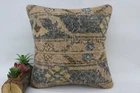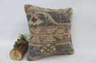 Ethnical Kilim Rug Pillow, Vintage Pillow, 14"x14" Beige Cushion Cover