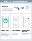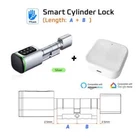 Euro Door Smart Cylinder Lock Tuya Bluetooth APP Digital Password Card Mechanicak Key TTlock Unlock Home Electronic Smart Lock Core Specification Material: 304 stainless steel + Aluminum + Plastic Color: Black, Silver 4 Unlock Ways: Password, Card, Metal Key, Tuya App ( Bluetooth ), TTlock App Lock Cylinder Size: 60mm, 70mm, 80mm, 90mm, 100mm,110mm Door Thickness: 60-110 mm Power Supply: Powered by 1pc CR123A battery ( Not included, customer should buy themself ) Emergency Power Supply: With Micro Type-C USB Charging Supported by Tuya App Tuya App is an smart lock app, its multiple functions always satisfy your requirements ● Manage fingerprint, card,APP user ● View access logs ● Check alarm and unlock record ● The language of the APP follows the mobile phone system ..etc. ● Tuya options with gateway , The smart lock can connect to WiFi. TT lock APP Functions: 1.The lock connect with the phone by Bluetooth. 2.Send temporary/ekey password remotely 3.You can open the lock / manage the lock (add user / delete user / set password and so on) 4.Add a G2 gateway if WiFi connection is required (Gateway buy extra)Connect Alexa through G2 gateway Gateway Connection method The lock can be connected directly with the bluetooth of the mobile phone The gateway can make it connect to wifi and compatible with Alexa and Google home ● Order TT Lock options with gateway G2. The smart lock can connect to WiFi and control by intelligent voice system with other smart home devices to achieve smart home. Details and Batteries This cylinder lock is an advanced smart lock offering Airbnb integration and high-tech automated features. The automatic lock feature can adjust the time for the ultimate security setting. The long life battery ensures the quality utilizing. ◆ How to judge whether it is suitable 1. The lock cylinder type is the same, 2. The size of the lock cylinder is the same or smaller How To Install? ●Simply use a screwdriver to install in 3 minutes ●No breaking the door or change the door body Packing Included Smart Cylinder Lock x1 Smart IC Card x 2 Mechanical Key x 2 Use Manual x1 Screw Bag x1 If you have many family numbers, and want more IC cards, pls Contact us freely!