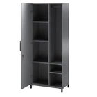 Be the envy of garage owners everywhere with a Shelby Tall Garage Cabinet with Hanging Rod from Constructed from durable engineered wood with metal plates, handles and feet The Tall 1 Door Cabinet features two fixed and two adjustable shelves for storing items tall to small Features open storage area for hanging coats and jackets The three open shelves on bottom are perfect for keeping gym shoes or muddy boots out of the house