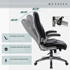 Our Ergonomic Office Desk Chair with Flip-up Arms, Your Perfect Choice! Are you looking for a modern comfortable bonded leather chair for your home office? Our Ergonomic Executive Office Desk Chair will make you feel comfortable, keep you develop a correct posture, and have a healthy body. Features: Double Padded Cushion Armrests, give more support and comfort when you concentrate on working Excellent Breathable Bonded Leather, wear-resisting and anti-oxidation, ensure you sit comfortably on this chair for a long time work Rocking Back and Forth Function, 90°-110°safety rocking angle Adjustable Tilt Tension Control, your comfort, you control! Inflatable Built-in Lumbar Support, close to the curve of the waist, more comfortable Adjustable Seat Height, allow you to adjust up and down to suit the height your need Flip Adjust Armrests, convenient for work and relax Heavy-Duty Base, make the chair in great stability and mobility Durable Quiet Wheels, make no noise when you sit on or move it, away from the noise issue Specifications: Total Height: 44.3" - 48" Back Height: 29.5" Seat Size: 21.1'' (W)* 19.7(D) Seat Height: 18.7" - 22.4" Seat Height: 3.4" Seat Cushion Thickness: 3.9” Arm Length: 11.8" Load Capacity: 250 lbs It is the best gift for yourself, your family and your friends! Our office chair can be used as an unforgettable birthday, Halloween, Thanksgiving, Christmas or holiday gift. It can bring a healthy body and a bright smile to the one you love. For a better life, you deserve it! Action Now Upgrade Your Working Experiece! 👍【BONDED LEATHER CHAIR, DESIGN FOR THE COMFORT】Not all artificial leather is created equally. This executive desk chair is upholstered in bonded leather that is resistant to scratches, stains, peeling, and cracking. With upholstered armrests and an elegant design look, this boss chair will complement your home or office perfectly. 👍【FLIP-UP ARM DESIGN】Flip-up arms offer an arm-less option without detaching anything,which gives comfort and support for your arms and shoulders. 90°rotation design which allows the chair can fit under the desk for space saving. 👍【ADJUSTABLE BUILT-IN LUMBAR SUPPORT】The built-in adjustable lumbar support allows for increasing and decreasing the pressure provided to your back. You can easily operate the lumbar support knob to adjust the back pressure to your preferred level. 👍【ADJUSTABLE HEIGHT & TILT LOCK】Seat height ranges from 18.7" to 22.4". Rock back and forth can relax your muscles and offer improved blood and lymph circulation while working. This computer chair provides reclining rock function between 90° -110°. 👍【SOLID CONSTRUCTION,CERTIFIED COMFORT】360-degree swivel, heavy-duty nylon base and smooth-rolling casters for great stability and mobility. BIFIMA certification,more reliable and sturdy, maximum capacity up to 300 lbs.