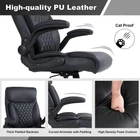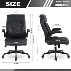 About this item [All-Day Comfort]: Made of high-density foam padded seat cushion and backrest, and upholstered in high-quality PU leather which is waterproof, cat-proof, wear-resistant and long-lasting. Thick padding and great breathability bring you a cozy sitting experience. A comfortable executive office chair can help enhance your productivity at work. [Premium Ergonomics]: Specially designed for maximum comfort with the contours of the human body, and help you relieve pressure when working long hours at a desk. Ergonomically lumbar support and cushioned armrests offer extra comfort. You can relax your back, waist and hips in this supportive leather office chair. [Adjustable Features]: Pneumatic seat height adjustment, 20°tilt, 90° flip-up armrests, and 360° swivel. Able to rock back 110° to help you relax. With the foldaway arms, the executive chair can easily slide under a desk for space-saving. Adjustability options allow you to customize the perfect setting to fit your body comfortably.