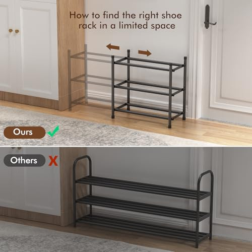 Return Policy Fast Delivery Trusted seller Expandable Shoe Rack, 3 Tier Shoe Rack for Closet, Stackable Adjustable Standing Metal Shoe Shelf Organizer Storage, Small Shoe Racks for Front Door Entrance、Entryway(Black) Product Description Expandable Show Rack: This shoe rack can be adjusted in length to fit your available space, making it ideal for small apartments. When fully expanded, it can hold up to 8 pairs of shoes, and when contracted, it accommodates 4 pairs. This design effectively maximizes your storage space. Stackable Design: Stack multiple shoe shelf together to make full use of vertical space while reducing the use of floor space, making your room more spacious and tidy. Easy to Assemble: shoe organizer features one-piece screws, allowing for assembly in under 2 minutes—no tools required! Multipurpose Design: With stacking and expansion features, this shoe storage is ideally suited for use in wardrobes, entryways, dormitories, or garages. Sturdy Construction: Shoe racks is made of denser steel, this design ensures stability when the shoe rack is extended or stacked. Shipping Returns Payment Shipping Shipping is FREE to all addresses other than APO/PO boxes in the lower 48 states. All our stock ships from US-based warehouses. Shipped via USPS or UPS (depending on location and package weight) Unless stated otherwise, all orders will ship within 24-72 hours of your payment being processed. Check our feedback to see the great reviews of FAST shipping we offer. Returns Seller does not accept returns Payment We currently accept payment via eBay managed payments only. Once payment is cleared, we will dispatch your shipment within 1-3 business days. Please refer to the "Shipping" tab for more information regarding shipping speed to your destination.