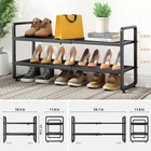 This 2 tier shoe rack can be extended from 18.6" to 30.5" and hold up to 8 pairs of shoes on the shelves, which is perfect space solution for shoes organization, and you can adjust the height of the shoe stand to fit taller boots as per your needs. Well-made of heavy-duty metal material with black coated finish and sturdy constructure, our shoe rack will not sag, collapse, rust and deform, while the adjustable feet ensure it stays stably on uneven grounds. It will serve for a long time. Expandable Shoe Rack: This 2 tier shoe rack can be extended from 18.6" to 30.5" and hold up to 8 pairs of shoes on the shelves, which is perfect space solution for shoes organization of small place, garage, entryway, closet and living room. Height Adjustable and Stackable: You can adjust the height of the shoe stand to fit taller boots as per your needs. Meanwhile, the 2 tier shoe organzier can be purchased more to stacke into 4-tier, 6-tier, 8-tier and even 10-tier to maximize the vertical space. Perfect for High Heels: The shelves of our shoe rack is specifically constructed from mesh wire grip that is taut enough to keep heels from teetering over. Compared with other flimsy plastic shoe racks or thin wire metal shoe racks, our shoe rack features better compatibility and durability. Built to Last: Well-made of heavy-duty metal material with black coated finish and sturdy constructure, our shoe rack will not sag, collapse, rust and deform, while the adjustable feet ensure it stays stably on uneven grounds. It will serve for a long time. Easy Assembly and Cleaning: This shoe rack can be assembled less than 10 mins with simple structure design. A detailed user manual and instructional video are also provided to simplify the assembly process. And you can rinse or wipe the rack to keep it clean. This rack would be a reassuring choice for you to organize the shoes.