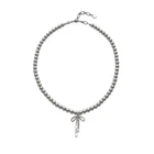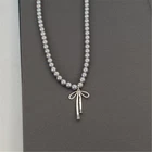Exquisite Pearls Bowknot Necklace Neckchain Charm for Women's Jewelry Collection Features: Elevate your with this gray pearls beaded bowknot pendant necklace, crafted from high for a fashionable and versatile accessory. The bowknot pendant brings a playful and feminine touch to any attire, making it suitable for both casual and formal occasions. Designed for women who appreciate beauty and want to showcase their unique of fashion. Wear it daily as a addition to your wardrobe or layer it with other necklaces for a more personalized and fashionable look. This necklace makes a thoughtful birthdays, anniversaries, or any special occasion, allowing the recipient to feel confident and beautiful. Specifications: Size:Approx.45cm/17.71inches Package Includes: 1Piece Gray Pearls Bowknot Pendant Necklace note: Please allow 1-2cm error due to manual measurement. Please make sure you do not mind before you bid. Due to the difference between different monitors, the picture may not reflect the actual color of the item. Thank you!