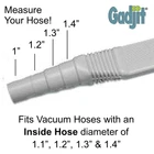 DEEP CLEANS HARD-TO-REACH AREAS: Ever wonder what's living and hiding under your fridge or furniture? Dust bunnies, crumbs & pet hair -- oh my! Let the long arm of Exten Vac get rid of those hidden messes! The flat hose design allows easy access to those hard-to-reach places like under kitchen appliances or heavy furniture. Picks up crumbs between couch cushions or on stairs. With duel directional suction from the end and underneath, it sucks up the stuff in front and underneath it. ESSENTIAL TOOL IN HOME CLEANING: Exten Vac Flat Vacuum Cleaner Attachment Hose Extender is a flat vacuum attachment that reaches areas like under the fridge, stove, vents, ducts, lint traps, corners to remove dust and dirt. It has a suction on the end AND the bottom of the attachment to capture anything that is in-front or under its path. An easy to use must have tool in home cleaning! WIDE RANGE & COMPATABILITY: Long, flexible, and sturdy the Exten Vac is perfect tool for any big or small cleaning projects. It adjusts to fit most vacuum cleaner hoses with an inner diameter of 1”, 1.2”, 1.3”, 1.4”, and provides up to a 36” reach. That's three extra feet of cleaning power! Get ready for your Fall and Spring cleaning with this handy and helpful Vacuum Cleaner Wand! DUAL DIRECTION SUCTION & EASY TO USE: The Extendable Under-Appliance and Furniture Vacuum Cleaner Attachment consists of two sturdy pieces of plastic that easily snap together and suction openings on the end and bottom to grab all the dust bunnies. To attach the Exten Vac, just slide the graduating end of the Exten Vac into the end of your vacuum hose until it stops. MATERIAL & DIMENSIONS: Made of tough high-quality plastic, Exten Vac is durable, safe, easy to clean and install. It is stiff enough that it does not collapse under vacuum but also flexes easily in any direction. DIMENSIONS: 21" x 3" x 2"; Weight: 4.8 OZ.