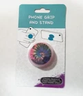 A plastic phone grip and stand in pink with a burst of multi colors on the top piece. It is extendable and flexible to allow you to hold your phone between your fingers or stand it up. In the photos, the blue grip is shown only to demonstrate the expandability and flexibility of the piece. Attaches to the phone with a strong adhesive backing, which will stick to most phones. Measures approximately 1 1/4" (3.17 cm) in diameter and 1/2" (1.27 cm) - 3/4" (1.90 cm) tall. Brand new in unopened package. Please feel free to contact me if you have any questions. Buyer to pay all shipping charges; just check the shipping calculator for your options. Thanks for looking!
