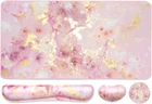 【Large and Extended Size】: large desk pad:35.4×15.75 inch, keyboard wrist rest measures 17.32" x 3.15" x 0.98" , Mouse wrist rest measures 5.4" x 3.15" x 0.98". Extended desk pad which is large enough to fit a full-sized keyboard and mouse, providing plenty of space for gaming or office work, and keeping a clean, uncluttered desk. 【Waterproof and Easy to Clean】: Equipped with waterproof coating, effectively prevents damage from spilled drinks or other accidents. When liquid splashes on the coating surface, it will form into water drops and slide down. Easy to clean without delaying your work or game. Can be used as desk blotter protector and desk decor mat. Great gift idea for friends, familiy, classmate and workmates. 【Ultra-smooth Surface】: This large mouse pad adopts superfine Lycra cloth on cover, which will make your mice glide on its surface smoothly. Provides you frustration-free mouse movement. Optimized for fast movement while maintaining excellent speed and control during your work or game, available for mechanical, wireless and optical mice. 【Slip-Resistant Backing】: The soft and dense slip resistant rubber base keeps the pad firmly in place, it can effectively prevent the mouse and keyboard from sliding and moving for stable operation. Works well on all types of desks including wood, glass, leather, metal, marble desk and more. While sturdy, the entended desk pad is flexible enough to be rolled up for easy transport, to move around so you can work or game wherever you want. 【Keyboard Wrist Rest and Mouse Wrist Rest Support】 : The keyboard wrist & Wrist pad is made of ergonomic memory Foam & Breathable Material. The fabric of the surface is super soft. Slow bounces back are not easy to out of shape provides comfortable and elastic support to the wrist. Keyboard Mouse Pad Set,Extended Gaming Mouse Pad+Keyboard Wrist Rest Support , Memory Foam, Easy Typing Pain Relief, 3Pcs (35.4×15.7 in) XXL Ultra Thick Desk Mat