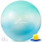 Note:Never keep the ball in contact with wooden products and painted walls for a long time.During the exercise, keep the ball away from your little pet, as their sharp claws may damage the ball Unique Design Concept: The balance ball kit adopts the concept of color matching to create a beautiful gradient effect. The pink-blue is like the sunset clouds on the horizon, which makes people feel happy; the blue-green is like the coastline, which brings people a relaxing and expansive reverie. The unique you deserve a unique and beautiful balance ball Anti-Burst Structure: Even if the balance ball is punctured in an abnormal situation, it won’t burst suddenly thanks to the honey comb structure and advanced foaming technology, offering you the best protection and avoiding the injury caused by a sudden fall Ultra-Thick Premium Environmentally Friendly Materials: To ensure your safety, stability ball with a maximum load-bearing capacity of 330lbs is made of ultra-thick high-quality environmentally friendly materials. Just use it with confidence. Plus, the yoga ball boasts a matte surface for greater slip resistance, providing ultimate stability and safety for your stretching, core training and more Perfect Substitute for Seat & Good Prenatal Fitness Partner: barre ball can relieve back pain caused by long-term sitting, correct your sitting posture, bring a soothing rest to your back, improve work concentration, and make you calm. It is also a good helper during prenatal and childbirth, relieving back pain during pregnancy, helping childbirth and accelerating postpartum recovery so that you can get back on track quickly and provide better care for your baby Perfect Exercise Ball Kit: Just strengthen your core, posture and balance while alleviating back ailments and building muscles with this fitness ball kit, which includes 1 balance balls, 2 air plugs, 2 plug pullers, 1 inflatable tube, 1 user manual and 1 foot pump with a large diameter for quick inflation and time saving