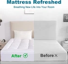 【Extra Fluffy】Our extra thick mattress topper queen size features 1400 GSM soft filling, revitalizing your overly firm mattress. Relax your body and relieve pressure for back pain. 【Supple & Supportive】A combination of 50% shredded memory foam and 50% down alternative provides a balance of softness and support. 【Friendly & Breathable】Our Pillow top mattress topper uses friendly material. The high-density fabric ensures breathability and comfort, keeping you cool all night. 【Deep Pocket】The 360° skirt and deep pocket are designed to ensure fit for 8 to 21-inch mattresses without slipping off. 【Kindly Reminder】Our Bed topper are compressed. We recommend gently patting it after opening it or using a tumble dryer to fluff up it. Product Description
