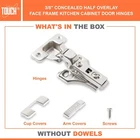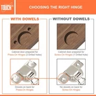 High-Quality Products TOUCH Cabinets Hardware is committed to providing a high-quality cabinet hardware, such as Door Hinges, Drawer Slides, and other kitchen cabinets hardware. Why TOUCH? Unlike other hinges, TOUCH clip on self close heavy duty cabinet hinges come with either dowels or screws, with two holes on both the door side and the cabinet side to secure the hinge, and a mounting plate. The hinge’s clip on design allows you to connect and disconnect with ease. TOUCH hinges are height, depth and side adjustable, leaving no room for awkward angles! Your satisfaction is our main priority, and we trust that our product will meet your needs. A 30-days full return/replacement is offered if faced with any obstacles, NO questions asked! EUROPEAN HINGE WITH NEW CLIP-ON (LATCH) FOR EASY AND SECURE CONNECT AND DISCONNECT THE HINGE FROM THE MOUNTING PLATE Keep your kitchen cabinets easy to open and simplify your kitchen setup with these self-closing kitchen cabinet hinges. The kitchen cabinet door hinges pull the cabinet door shut after being opened and released so that you do not need to worry about closing the cabinet doors with your hands full of food. Constructed with durable cold-rolled steel with a sleek nickel-plated finish, these high quality and heavy duty hinges for cabinets are easy to install onto your kitchen cabinets, bathroom cabinets, wall cabinets and furniture cabinets. Our European cabinet hinges can be used with new cabinets or as a cabinet hinges replacement for old hinge hardware. These cabinet door hardware hinges feature an opening angle of 110 degrees, and the concealed cabinet hinges include plastic dowels for easy installation, arm and cup covers to give the kitchen cabinet hardware hinges a sleek, refined appearance. SPECIFICATIONS Application: Face frame or frameless cabinet Closing type: Self Close (NOT SOFT CLOSING) Mounting type: Screw-on or with dowels Opening angle: 110° Degree Diameter of hinge cup: 35mm Height of hinge cup: 11.3mm Distance of cup holes centers: 45mm Door thickness: 14-21mm CLOSING TYPE Self close (NOT SOFT CLOSE), door close fast automatically at certain angle. ADJUSTMENT 3-Way adjustment for easy adjust and precise Installation. OPENING 110° degree opening angle it’s easier to open doors to suit your kitchen needs.
