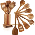 FJNATINH Wooden Spoons for Cooking, 10 Pcs Teak Wooden Cooking Utensil Set wi...