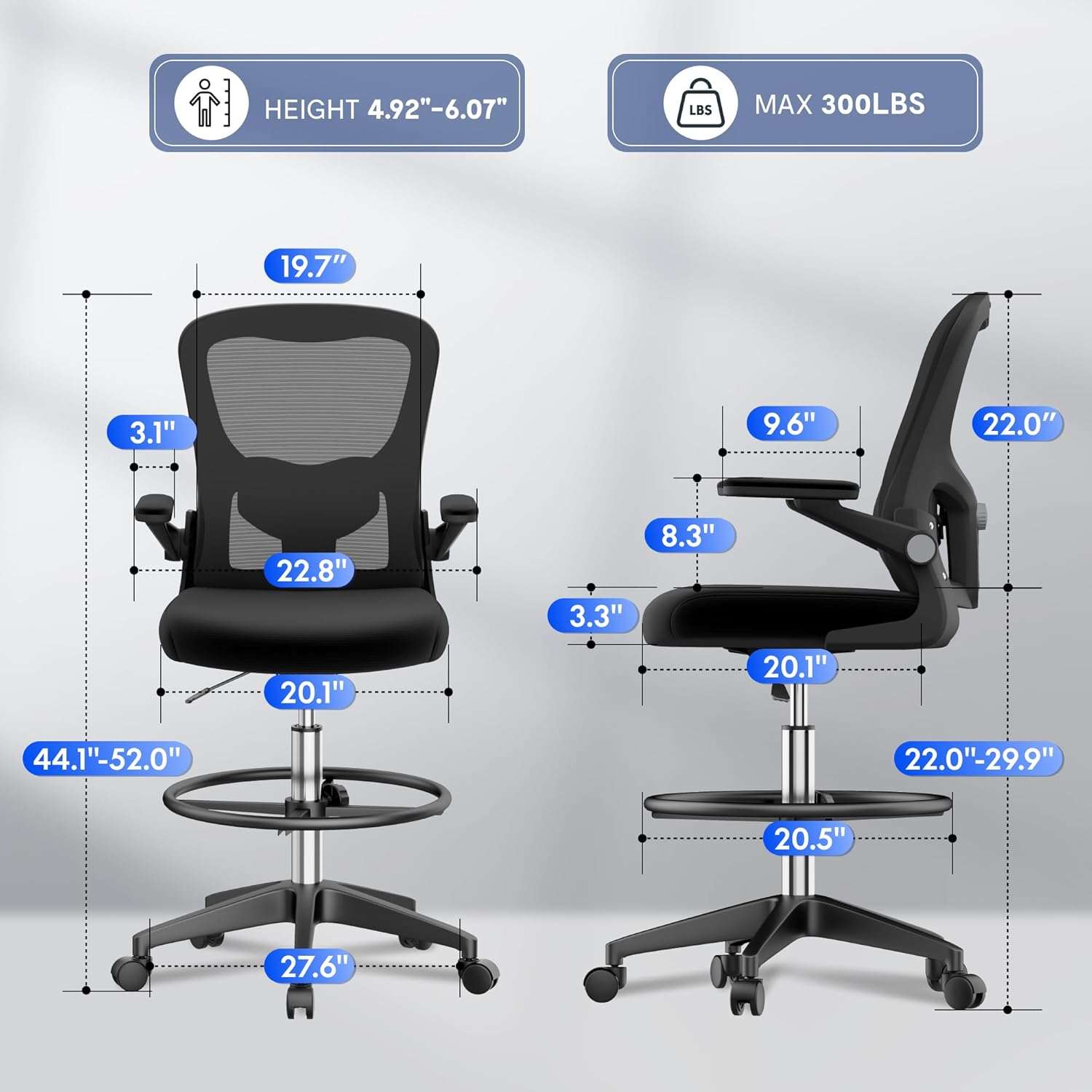 Store New Arrivals Add to Favorite View Feedback Contact FLEXISPOT Upgraded Drafting Chair Tall Office Chair with 2D Lumbar,3D Flip-Up Armrest,Standing Desk Chair with Breathable Mesh Adjustable Foot Ring Stool BIFMA Certified for Home Office,Black Description Item model number TC1-NEW Style TC1-4 Pattern Solid Seat Height 29.9 Inches Theme Top 1 Drafting Chair Seat Back Interior Height 22 Inches Unit Count 1.0 Count Room Type Drawing Room, Living Room, Kitchen Bar, Office, Office Reception, Music Room Is Customizable Yes Brand FLEXISPOT Tilting No Seat Length 20.1 Inches Maximum Weight Recommendation 300 Pounds Age Range (Description) Adult & Child Arm Style 3D Flip-up Arms Leg Style Five-star leg Finish Type Brushed,Polished Model Name FLEXISPOT drafting chair Included Components Arm Pad, Caster, Cushion, Assembly Guide & Tools Frame Material Metal,Nylon Seat Material Type Memory Foam Indoor/Outdoor Usage Indoor Chair Backrest Width 20 Inches Back Style Solid Back Item Weight 27 pounds Fill Material Foam Surface Recommendation Hard Floor Special Feature Adjustable Height, Adjustable Lumbar, Arm Rest, Cushion Availability, Ergonomic, Foot Rest, Lightweight, Rolling, Tilt Tension Material Nylon & Alloy Metal & Memory Foam Item Weight 27 Pounds Assembly Instructions Description The chair requires assembly. Please follow the assembly guide and use the provided tools to set up the chair. Furniture base movement Swivel Reclining Position Count 1 Color Black Form Factor Standing Desk Chair Furniture Finish White Frame & Grey Mesh Shape L-Shape Recommended Uses For Product Drafting, Gaming, Office, Reading, Relaxing Manufacturer Flexispot Product Dimensions 27.6"D x 27.6"W x 52"H Seat Depth 20.1 inches Size Max Height Standing Desk Chair with Footrest Ring: This drafting chair is versatile, designed not only for standing desks but also ideal for creative spaces like art studios or design offices. It suits artists, designers, and architects who need adjustable height for drawing tables. The footrest ring ensures comfort during extended work sessions. Additionally, it fits well in labs, workshops, or homes with high kitchen counters, making it a practical choice for anyone needing flexibility in seating Adjustable Drafting Chair: With multiple adjustable parts, this chair can be tailored to your height, footrest ring, and lumbar support preferences. It’s ideal for various heights and desk setups, offering flexibility whether you work at a standing or traditional desk Ergonomic Office Chair: This chair’s ergonomic design includes a 2D lumbar support for customizable lower back comfort, 3D flip-up armrests that can be adjusted or moved out of the way, and an adjustable footrest ring to support different seating positions. Additionally, the flip-up armrests allow the chair to slide easily under the desk, saving space when not in use. These features ensure a comfortable and healthy posture, perfect for long hours of work Comfortable Computer Chair: The thick cushion and breathable mesh backrest ensure long-lasting comfort, reducing discomfort from prolonged sitting. The adjustable footrest provides added leg relaxation, significantly enhancing the overall experience After-sales Service: We offer worry-free after-sales service, including a warranty of up to 3 years and 24/7 customer support, ensuring peace of mind after your purchase Product description FUNCTIONAL CHAIR 1 2D Lumbar Support 2 3D Armrests 3 Adjustable Foot Ring 1 Breathable mesh 2 Comfortable seat 3 Quality material ABOUT US We offer the best prices around on high quality products. Our E-store includes media such as books, movies, music and games while offering electronics, toys, sporting apparel, clothing, tools, general home, garden items and more. SHIPPING We are always working hard to ensure your package arrives as soon as possible. Please understand that some factors like weather, high postal traffic, and the performance of shipping companies are outside of our control. For shipping outside of the continental USA, we only use eBay's Global Shipping Program.The item is shipped to KY and then sent to the rest of the world. International customers are responsible for all duties and taxes. Continue to check out in order to calculate costs for shipping the item to your country. Messages regarding eBay's Global Shipping Program MUST be directed at eBay EXCLUSIVELY. RETURNS We offer a 30-Day Return Policy on items which you are not completely satisfied with. You have the option for a full-refund or an exchange of the item. No returns are available on items shipped outside of the USA. PAYMENT We accept PayPal. CONTACT US This page content is yet to come Please ad us to your favorite seller and visit again later Thank You CUSTOMER SATISFACTION We try our very best to make sure every customer is completely satisfied. If there's a problem, message us! We're happy to help. WE ACCEPT Copyright © 2021 AutoDS. | All Rights Reserved