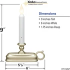 Features a soft, warm white LED light and Large Pewter (silver) base Automatically turns on at dusk and off at dawn LED window candles will last 45 days on 2 C batteries (batteries sold seperately) 3 position switch for flame setting: Off/Steady On/Flicker Measures: 9"H x 6"W x 1.75"D Illuminate your windows safely and cheerfully with this LED-light dusk to Dawn sensor window candle. Battery operated for a clean, wireless look; this classic-style ivory taper with a "flame" has three settings: off, steady on flame or flickering light and has a handsome sculpted candle holder. A discreet automatic sensor turns the candle on at dusk and off at dawn so it's effortless to use, and unlike an incandescent bulb, the LED bulb stays cool for worry-free lighting all night long. Requires 2 C batteries (not included). Batteries will last 20 days when lit for 12 hours on per day and measures: 9"H x 6"W x1.75"D. For indoor use only. Great for window sills since it's only 2 inches deep.