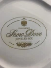 The Faberge Snow Dove Jewelry Box of 1991 is a rare and exquisite fine porcelain collectible. Featuring a delicate snow dove theme with gold ribbon accents. this box is beautifully crafted with a white ceramic material. Lined with a burgundy velvet Its rare nature and intricate design make it a sought-after item for those who appreciate fine decorative collectibles. This piece is missing a porcelain Insert tray, but otherwise I’m beautiful condition.