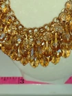 This classy and bold statement necklace features a beautiful teardrop-shaped champagne crystal as its main stones, set in a gold-tone mesh chain. The necklace is adorned with faceted beads, creating a stylish and eye-catching design. With a lobster closure and a length of 18 inches, this piece exudes a blend of beauty, bohemian, ethnic, and fashion & costume themes, making it a versatile accessory for various occasions. **Any wear or discoloration (for example near/on clasps) is commeserate with the age and pre-loved nature of the pieces I list. Items may need a gentle wipe down. I price fairly based on comparables when available. I'd like this experience to be fun. Good luck and thank you 🕊️