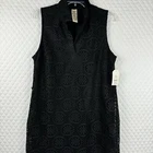 Embrace your inner goddess with this stunning black lace dress from Faded Glory. With a crochet and layered accent, this knee-length dress is perfect for any occasion, whether it be a wedding, party, or casual outing. The collared neckline and pullover closure add a touch of elegance to this bodycon dress, while the sleeveless design and no-sleeves sleeve type provide a comfortable fit for warmer seasons. Made from polyester and machine washable, this dress is easy to care for and perfect for those who enjoy vintage-inspired clothing. The dress is lined and has a slimming effect, making it ideal for those who desire a sexy and comfortable look. Available in size L 12/14, this dress is suitable for anyone who wants to channel their inner witch and make a statement. Length = 38" Width = 20" (arm pit to arm pit) All measurements are taken flat and are approximate. Clothing items are steamed and/or washed prior to shipping Goth, witchy, dark fairy, crochet, lace, little black dress, event, work, office, business, neru neckline, dark academia, alternative