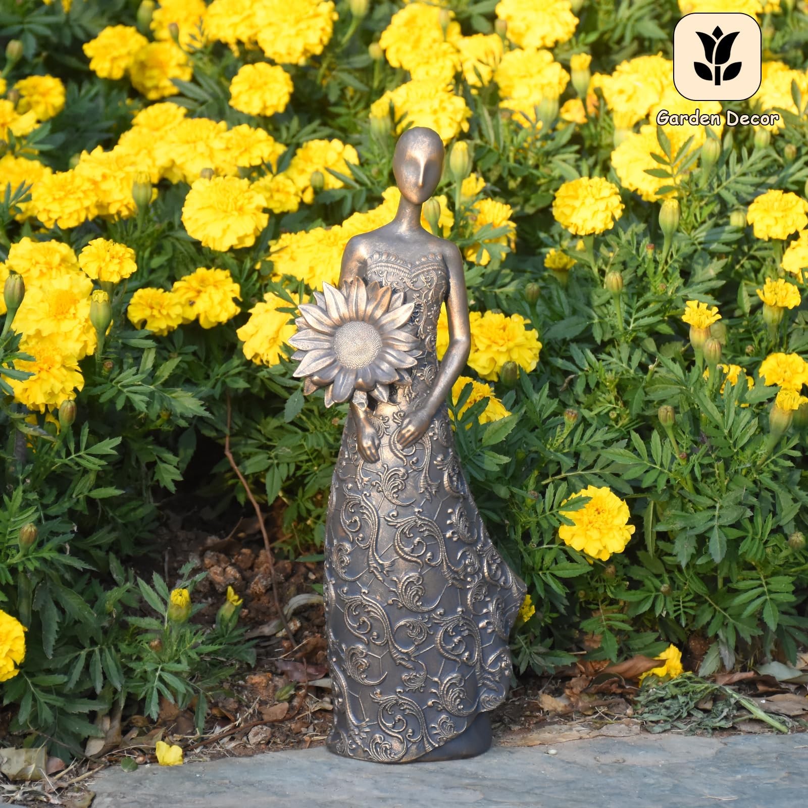 Fairy Garden Decor;Outdoor Garden Statues;Fairy Statues Outdoor;Outdoor Statues for Garden 【Fairy Garden Decor】Inspired by art and nature, this elegant long-skirted maiden statue features a young girl holding a sunflower, a symbol of sunshine, hope and eternal beauty, adding a touch of healing and romance to your space. 【Outdoor Garden Statues】The flower girl statue is made of resin with vivid and realistic details, fine polished surface, waterproof and can be placed indoors or outdoors, medium weight, stable and not easy to fall over. 【Fairy Statues Outdoor】Maiden skirt folds and sunflower dynamic lifelike suitable for placement in the living room, study, bedroom, to enhance the artistic atmosphere is also outdoor patio, balcony, romantic decoration, and green plants and flowers. 【Angel Statues for Garden】Add a sense of poetry to life, let the elegant companionship of this sunflower girl brighten up every ordinary day. 【Outdoor Statues for Garden】Suitable for gifting to close friends, family or partners, to convey the heart, on birthdays, Valentine's Day, Tanabata, Mother's Day, Thanksgiving Day, a tribute to gentleness and resilience.