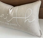The word of God has a special way of motivating and providing strength whenever we might need it with just a few verses. There is always a verse that can convey exactly what you need. This inspirational and cute decor is made of pure cotton with embroidered writing. Self hidden invisible zipper along with corded edges all along. Perfect decorative pillowcase for family, birthday, farmhouse, couch, sofa, modern office, bed, indoor, outdoor, bedroom, living room, chair, nursery, country house, lounge, bench, apartment, hotel, porch, patio, housewarming, entryway, wedding, guestroom, beach house, realtor, interior decorator, lounger, homeowners Package Content : 1 pc zipper closure throw pillow cover only. Please note : No insert or stuffing included. Fabric : Pure natural color fabric used for this sayings rectangle pillowcase. Embroidery : Quotes or letters are Offwhite thread embroidered. ivory color corded/welted edges. Size : This decorative toss cushion cover measures 12 by 20 inch or 30 by 50 cms. Washing & Care : Machine wash using cold water. Gentle cycle, warm iron as needed
