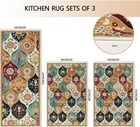 Moroccan Trellis Kitchen Rugs Sets of 3: Falflor Moroccan Trellis kitchen rug sets include 3 piece kitchen rugs for floor,which measures 20”x32”+20”x32”+20”x47”, which can better meet your needs for placing this rug. Perfect size for your kitchen floor, or use as home decor. Design with Vintage elements,which bring visual luxury and elegance to your home decor. Non-Slip Backing: This kitchen rugs non slip washable is made of premium TPR blending cotton as backing, which is more slip-resistance than other cotton backings, rubber backing and polyester backings. These non slip kitchen rug with runner can firmly grip the floor without slipping and is suitable for placement in areas with high traffic. Machine Washable & Easy to Care: These kitchen rug and mats are east to clean, just toss this rug into machine washable for deep cleaning with mild detergent,and hang it to dry or air dry.If you want to save your time and energy, you can also wipe dirt off with hand-held vacuum for daily cleaning. This washable kitchen rug sets is durable. Soft & & Low Pile: Falflor kitchen mat sets is made of premium polyester fabric material, wear-resistant, non-fading,which is soft and comfortable underfoot.In addition, low profile design make these rugs perfect to fit under the door, won't create any tripping hazard and never get caught beneath doors. Prefect kitchen mat sets is suitable for most doors in front sink, kitchen floor mat,entrance rug. Versatile Kitchen Mats Sets: These rugs sets of 3 are ideal solution as kitchen rug, wash room floor mat, bathroom mat, indoor entrance doormats, hallway runner rug. The Vintage design looks pretty and adds elegant touch in your home, in addition this pattern will mach any space in your home.