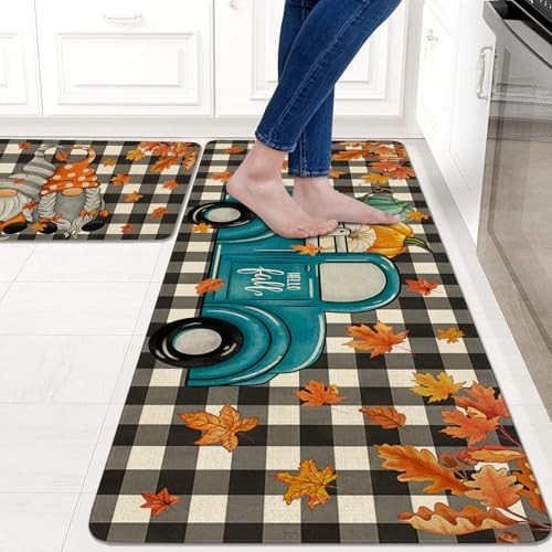 Return Policy Fast Delivery Trusted seller Fall Kitchen Rugs Set of 2, Pumpkin Truck Gnomes Kitchen Mats for Floor, Thanksgiving Black Buffalo Plaid Non-Slip Washable Sink Mats Autumn Home Decor Doormat+Runner Rug Product Description 【Kitchen Floor Mat Package】Kitchen Rug SET of 2,1 pcs kitchen runner rug 17"x47"(42cmx120cm),1 pcs rectangular floor mat 17"x30"(42cmx75cm);This rug mat set is not only suitable for indoor kitchen sink,living room,bathroom makeup counter,hallway,entryway,but also for outdoor patio,garden,terrace,garage,etc anyw you want to place it. 【Perfect For Home Decor】Crystal velvet surface soft to stand on,no deformation,rubber polka dot backing,Water absorption non-slip walking safety,place on dry floor,Low profile design to be placed in any setting under doors well,not so thick and bulky that you would trip on it 【Cozy Anti Fatigue Standing Mats】The anti fatigue kitchen mat provide soft,comfortable support to help improve circulation and relieve pressure on your feet,knees,lower back,and joints.Ideal for kitchen front of the stove,counter/bench space,hair salons,restaurants,offices,front desks,laundry etc other places w people have to stand for long periods of time. 【Stylish Kitchen Mat Set】The exquisite carpet set fit various styles of home decor,perfect for birthday,family party,theme party,anniversary,wedding,Halloween,Thanksgiving,Christmas,etc occasions while washing dishes or getting dinner ready decorate your holiday life 【Washable Kitchen Rug】Kitchen mats and rugs are easy care,use handheld vacuum cleaner to remove surface dust or use cold water machine wash for deep cleaning,no bleaching,no wringing,dry flat or dry at low temperature for best results. Shipping Returns Payment Shipping Shipping is FREE to all addresses other than APO/PO boxes in the lower 48 states. All our stock ships from US-based warehouses. Shipped via USPS or UPS (depending on location and package weight) Unless stated otherwise, all orders will ship within 24-72 hours of your payment being processed. Check our feedback to see the great reviews of FAST shipping we offer. Returns Seller does not accept returns Payment We currently accept payment via eBay managed payments only. Once payment is cleared, we will dispatch your shipment within 1-3 business days. Please refer to the "Shipping" tab for more information regarding shipping speed to your destination.