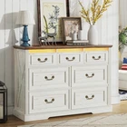 【Large Dresser Chest Drawers】The dimensions of the vintage dresser is 47''W x 15.75''D x 33''H, with 7 various chest drawers. Providing storage space in the home for clothes, socks, linens, throw blankets, or pillows. Farmhouse dresser creates a cozy atmosphere, bringing a touch of rustic style to your bedroom and living room decor 【LED Dresser】The wooden dresser features 3-color LED lighting that set a warm home vibe, and you can adjust the brightness as needed. Additionally, it has a motion sensor design, so the lights turn on and off automatically. The built-in USB and Type-C ports make charging easy, allowing you to say goodbye to messy wires 【Thoughtful Drawers Design】This elegant dresser features well-designed drawers. The top three drawers are slightly smaller in size to accommodate items within your reach. The bottom four high-capacity drawers meet your storage needs. One of the drawers is a hidden locking drawer, perfect for securely storing firearms and valuables 【Sturdy and Long-lasting】The bedroom chest drawers is crafted from strong MDF, ensuring it lasts a long time and resists scratches. It has a waterproof surface that's easy to wipe clean. Its freestanding design boasts a solid base and anti-tip device, keeping it safe for kids and pets. Each drawer holds up to 20 lbs, and the reinforced top can handle up to 100 lbs 【Easy Assembly & Multifunction】We provide clear installation guidelines, broken down into easy steps. Each spare part comes with a code, and exact hole placements ensure a fast and precise setup. This beautifully crafted antique white dresser enhances any space in your home. You can utilize it as a bedroom dresser, console table, TV stand, or coffee bar cabinet LED Dresser with Human Sensor Light Elegant Wood Dresser with Unique Design