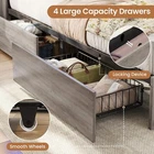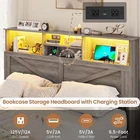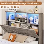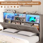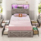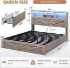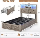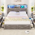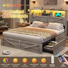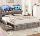 About this item 【Bookcase Storage Headboard】This bed frame twin size with bookcase headboard features a 5-tier storage shelf and four open storage cubes in varying sizes, with a 7.9’’ depth to provide you large storage space, making it convenient for you to place or reach commonly used items such as books, phones, alarms, etc. Additionally, there’s a secret compartment hidden in the headboard which can store private items and keep your bedroom clean and organized. 【Embedded Charging Station】The twin size bed frame with charging station includes 2 standard AC outlets, 1 USB port and 1 Type C to satisfy multiple charging needs simultaneously. Accompanied by a 6.6ft long power supply cord for efficient cable management, eliminating the need for extra cords and outlets. 【Customized LED Lights】The farmhouse grey twin bed frame with headboard and storage is equipped with a light strip that can change multiple colors and modes. The LED lights boast over 60000 colors, 29 dynamic modes, brightness&speed adjustable, schedule on/off, dual control by remote or phone APP to customize your favorite style. Plus, the lights also sync with music and make lights dance, which can create a relaxing and romantic atmosphere in the room. 【4 Large Storage Drawers】Say goodbye to clutter and embrace a tidy bedroom. Our twin bed frame with storage is equipped with four spacious under-bed drawers on wheels. Ideal for organizing off-season clothes, quilts, and smaller items, these drawers ensure your belongings are neatly stored away. We also provide matching locking device for each drawer to prevent snags and keep everything in place, safeguarding your possessions. 【Heavy Duty&Sturdy Structure】Featuring a barn door pattern and classic farmhouse elements, a sturdy wood silhouette with sturdy metal frame gives this beautiful twin bed frame with led lights such a substantial presence. This wooden bed frame twin size is made of high-quality FSC-Certified wood and metal slats, which is sturdy and durable, no box spring needed with a load-bearing capacity of up to 800 lbs. 【Easy Assembly&Great Service】Package comes with detailed installation instructions, all parts and accessories are easily identified with numbered stickers for easy recognition and we supplied a pack of spare parts in case of loss of hardware during assembly. Please feel free to contact us if encounter any problems, our service team are always there for you. Product Description queen bed frame with bookcase storage headboard farmhouse queen bed frame with led lights Previous page Next page Bookcase Headboard Charging Station Large Drawers Farmhouse Grey Wood Bed Frame with Storage and Charing Station Sturdy Structure with cushion pads no squeaks noise-free Easy Assembly plug-in design easy installation ensure security