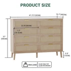 ❤️Specifications: Product Dimensions 52.56"D x 19.49"W x 7.87"H Color Rattan Mounting Type Floor Mount Room Type Bedroom Drawers: 6 Product Dimensions 52.76"D x 18.9"W x 8.86"H Color Wood Mounting Type Floor Mount Room Type Bedroom Drawers: 8 ❤️Features: Elegant Rattan Design: This dresser features a stunning woven rattan exterior with chic gold metal handles, offering a classic yet warm look that enhances your home's aesthetic and serves as a stylish focal point in any room Elegant Rattan Design: This dresser features a stunning woven rattan exterior with chic gold metal handles, offering a classic yet warm look that enhances your home's aesthetic and serves as a stylish focal point in any room Ample Storage with Six Drawers: With six spacious drawers, this rattan dresser offers ample storage for organizing clothing, accessories, and household items, making it an essential addition to any bedroom, living room, or entryway Ample Storage with Six Drawers: With six spacious drawers, this rattan dresser offers ample storage for organizing clothing, accessories, and household items, making it an essential addition to any bedroom, living room, or entryway Durable Construction for Everyday Use: Crafted from premium engineered wood and equipped with strong legs, this chest of drawers is built to withstand daily wear and tear, ensuring long-lasting durability for a functional and stylish storage solution Durable Construction for Everyday Use: Crafted from premium engineered wood and equipped with strong legs, this chest of drawers is built to withstand daily wear and tear, ensuring long-lasting durability for a functional and stylish storage solution Versatile Usage Beyond the Bedroom: While ideal as a bedroom dresser, this versatile piece also serves as a storage solution for the living room, hallway, or entryway, helping to keep your space tidy and organized while adding a touch of farmhouse charm Versatile Usage Beyond the Bedroom: While ideal as a bedroom dresser, this versatile piece also serves as a storage solution for the living room, hallway, or entryway, helping to keep your space tidy and organized while adding a touch of farmhouse charm Easy Assembly: The closet dresser comes with a detailed instruction manual and all necessary assembly kits for a straightforward setup, allowing you to spend less time assembling and more time enjoying a stylish storage solution Easy Assembly: The closet dresser comes with a detailed instruction manual and all necessary assembly kits for a straightforward setup, allowing you to spend less time assembling and more time enjoying a stylish storage solution Stylish Design with Natural Rattan: This 8-drawer dresser features a beautiful woven rattan design and elegant gold handles, offering a classic and warm aesthetic that enhances your home decor, making it the perfect addition to any room Ample Storage Space: With eight spacious drawers, this rattan dresser provides ample storage for clothing, accessories, and household items, keeping your space organized and clutter-free with a practical solution for all your organizational needs Durable Construction: Made from premium engineered wood and supported by five strong legs, this dresser organizer is built to withstand daily wear and tear, combining style and durability to remain a staple in your home for years Versatile Use for Any Room: This chest of drawers serves as an ideal storage solution for your living room, hallway, or entryway, with a versatile design that provides extra storage while maintaining a stylish look in any space Easy Assembly Included: This storage organizer includes a detailed instruction manual and all necessary assembly tools for a straightforward setup, allowing you to quickly enjoy your new dresser without the stress of complicated assembly 📦Package Included: Cabinet Installation Tool Instruction 🏙️About us Worried about not finding your ideal furniture?Let's unlock all your worries!We are a large and competent e-commerce company with more than ten warehouses in the US.We have provided millions of products for our customers!Our brand is dedicated to providing our customers with high-quality, uniquely designed, and well-crafted products at affordable prices.We have many storage products as wardrobes, shoe cabinets, lockers, etc. We also have different furniture for you to choose from, giving you an ideal solution to decorate your home. 🚚About Shipping After receiving payment, we will process your order within 1 working day (excluding weekends),and it will takes about 5-10 days to arrive. ☎️After Sales All items will be strictly inspected before being shipped,but we cannot determine what will happen to them during transportation.We hope that all our buyers can receive complete package.If you have any questions when receiving the items,please feel free to contact us at any time and we will do our best to solve the problem for you.