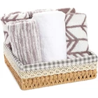 Our 3 baskets for organizing are perfect for those who want functionality and style in their home storage solutions. Each basket has a removable liner, providing versatile storage for various household items, from towels and clothing to beauty products and spices. These assorted baskets for organizing can be used across multiple house rooms, including the bathroom, laundry room, kitchen, living room, and bedroom, for decorative and practical purposes. Our wicker baskets with lining are made of high-quality woven paper material, ensuring they are durable and stylish. The neutral color of the baskets makes them versatile enough to match any rustic-style or modern home decorations. They are also easy to clean and maintain, allowing you to use them for years. These baskets make great gifts for Christmas, birthdays, or housewarming parties. With 3 different sizes, you can use them separately or stack them for even more storage space. They are perfect for those who want to declutter their home while adding a touch of elegance to their decor. Basket with Liner for Organizing: Use this set of rustic-style woven wicker storage baskets for organizing home essentials like magazines, clothes, toys, craft and school supplies, and hand towels Nesting: These lined baskets stack inside of each other for convenient storage when not in use; ideal for your drawer, shelf, desk, laundry room, bathroom, nursery, or kitchen Strong and Lightweight: This set of woven wicker storage baskets for shelves is made of woven paper material, has a sturdy iron wire frame, and a removable cotton lining that is easy to clean Assorted Sizes: The wicker baskets for organizing come in 3 sizes: the large basket measures 10x3 inches, the medium basket measures 8x3 inches, and the small basket measures 7x3 inches What You'll Get: You will receive 3 wicker organizing baskets; each banana leaf basket is an excellent gift for a friend or loved one at a housewarming party, birthday party, or baby shower