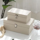 TIMELESS ELEGANCE, UNCOMPROMISED STYLE. - A masterfully crafted piece of art that adds a touch of elegance to any room. This box is made from the finest quality of wood, and its intricate design is sure to be admired by all who see it. Its timeless beauty will bring a unique charm to any space and make it stand out amongst other home decor items. KEEP YOUR TREASURES SECURE - IN STYLE. - The lid with metal clasp keeps all your prized possessions safe and secure. The woven PU leather exterior adds an extra touch of sophistication. No matter what you need to store, this versatile boxes will ensure that all your items are kept safe and sound. UNLOCK THE PERFECT ORGANIZED HOME. - Look no further than this beautiful entryway or bedroom storage chest! Perfect for keeping precious keepsakes, trinkets, jewelry and other small items organized and out of sight, this storage chest is the perfect addition to any home. FOR MOMENTS THAT MATTER - Looking for the ideal present can be overwhelming. These decorative boxes are perfect to show someone how much you care for them, whether it's a wedding anniversary or a birthday. Grab one and make any occasion extra special! SECURELY STORE, CONVENIENTLY SIZED. - Available in two sizes to fit your needs.The larger option measures 11 x 4.3 x 6.7 Inches, while the smaller size is 9 x 4.9 x 3.3 Inches - both providing plenty of space to store your items securely and conveniently.