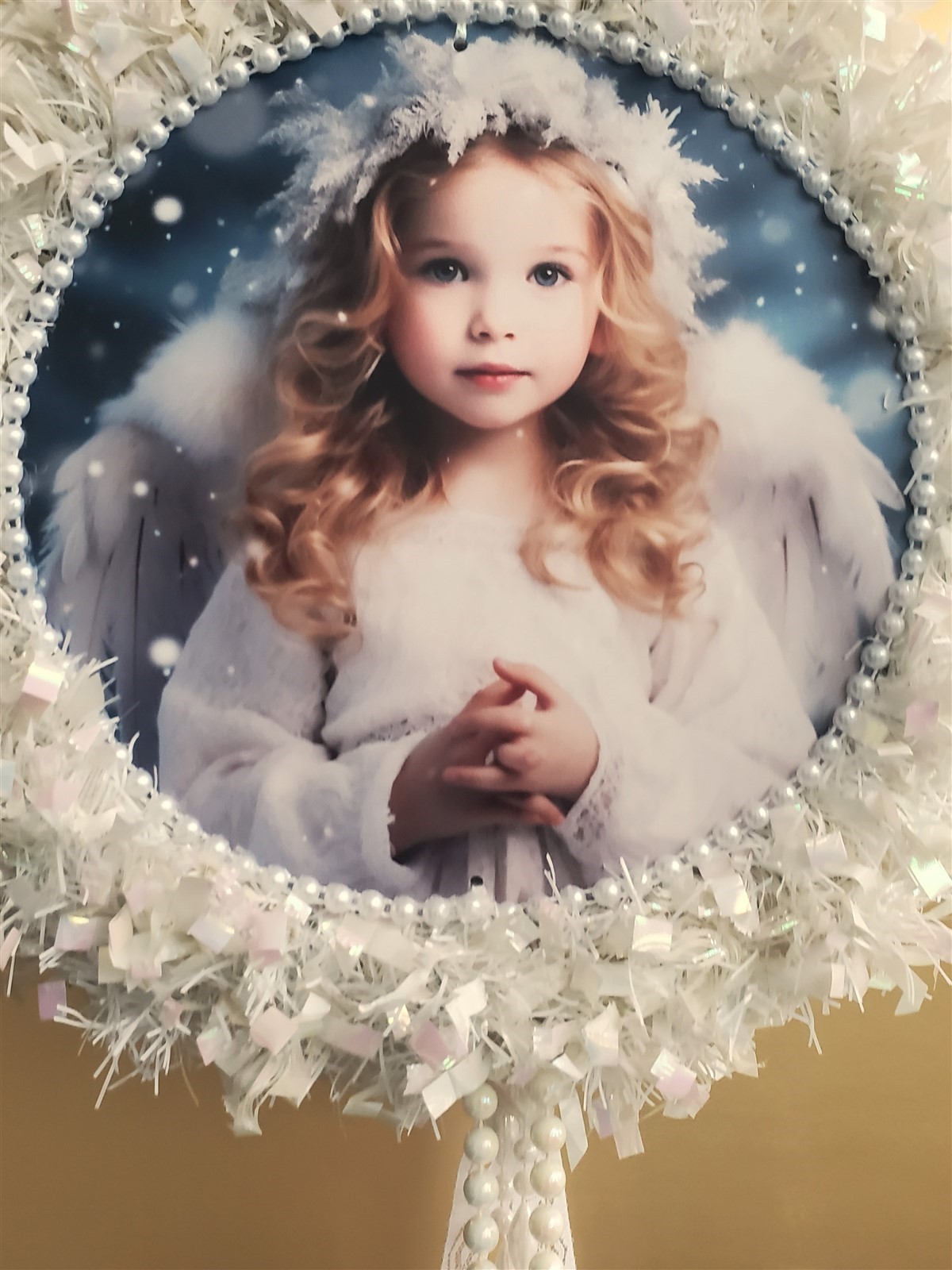 This stunning angel wreath is absolutely breathtaking! The delicate lace, shimmering garland, and faux pearls add such a magical touch. The blue and white color scheme is so elegant, perfect for holiday decor. I love the intricate details—it's clearly handmade with care. The metal angel sign is beautiful, and the bead hanger makes it easy to display. It looks gorgeous on my front door, instantly adding Christmas charm. Unique, charming, and worth every penny! Highly recommend this lovely piece—it’s a true showstopper.