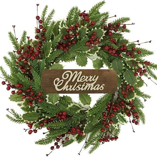 This festive wreath is absolutely stunning—it looks so realistic with its lush green holly leaves and vibrant red berries! Perfect for adding holiday cheer to my front door or even indoors. The quality is fantastic, and it arrived super fast. Love how full and natural it looks—definitely a great buy for the season!