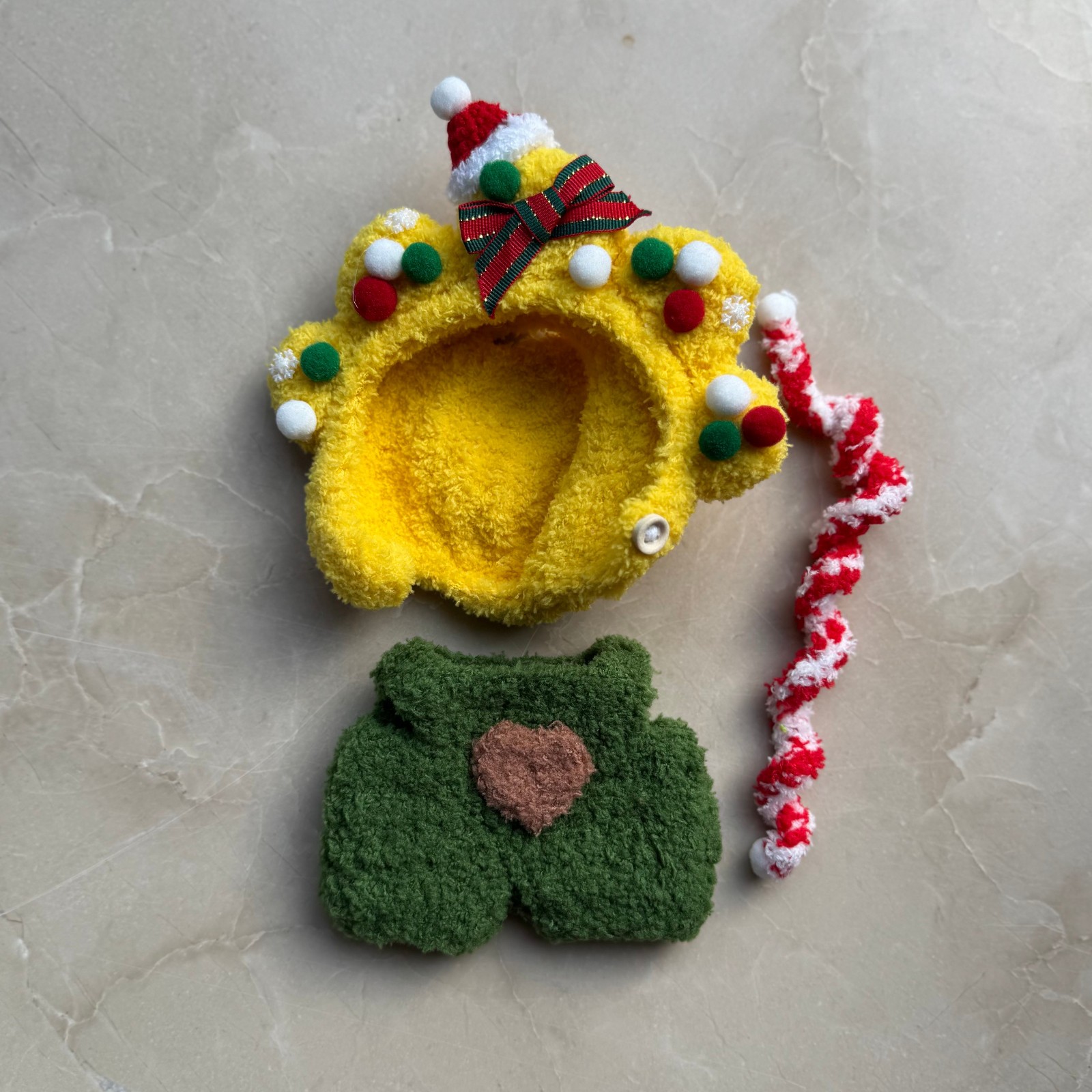 🧸 Description Celebrate the holidays with the 🎄Festive Hat & Cozy Overalls Set🎄 – a handmade crochet outfit designed for 15–17cm Labubu dolls. Featuring a pom-pom hat and fuzzy green overalls with a heart detail, this outfit adds playful winter charm to your collection. 📏 Details • Fit: Best Fits 17cm Labubu dolls (Macarons and Big into Energy Series) • Includes: - Crochet Hat - Crochet Overalls - Crochet Scarf ⚠️ Doll not included 📦 Shipping • Processing time: 1-3 business days 📩 Message me with questions!